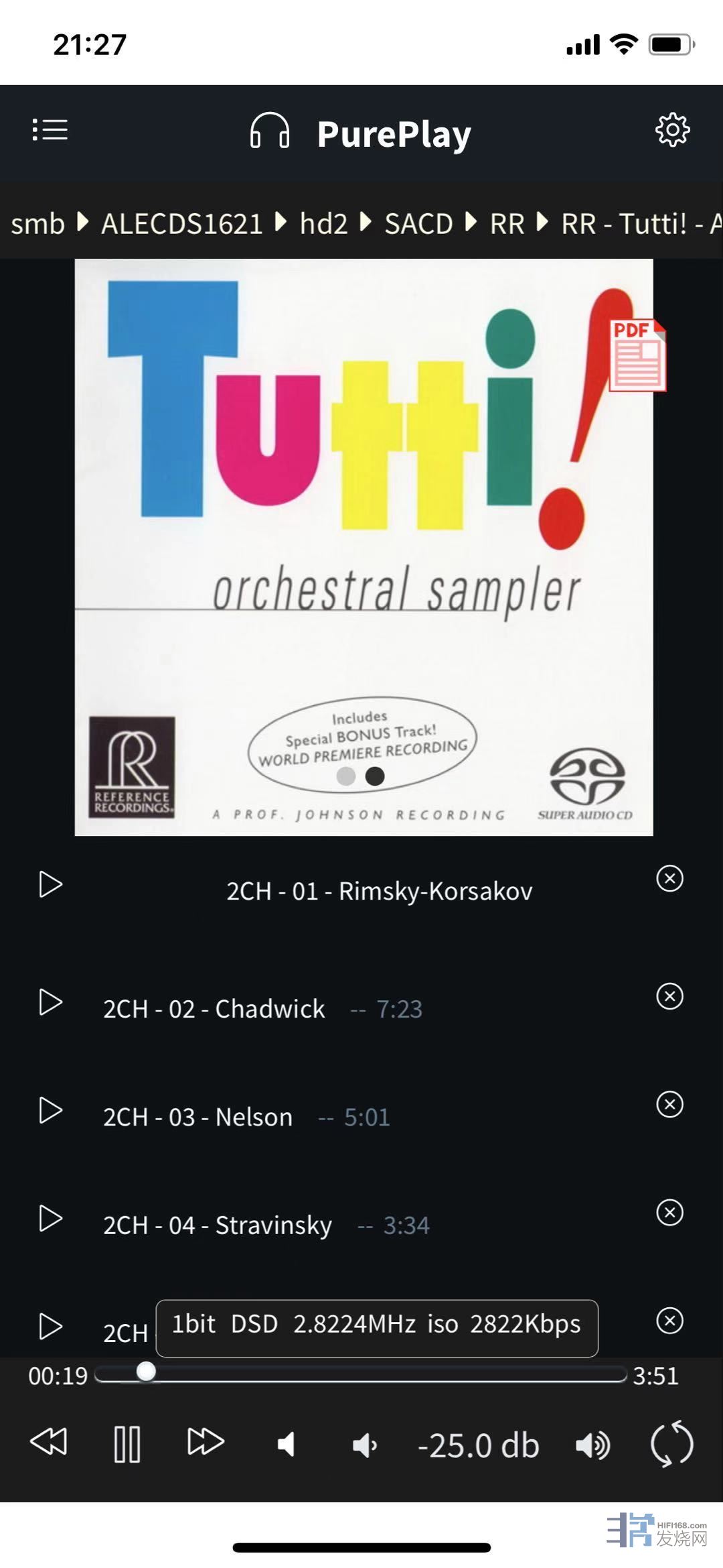 其次,是小盒子播放 SACD iso 文件,明显优于 PRO 直解 iso, 背景宁静,声音更加鲜活,密度高,信息量大且有模拟味道