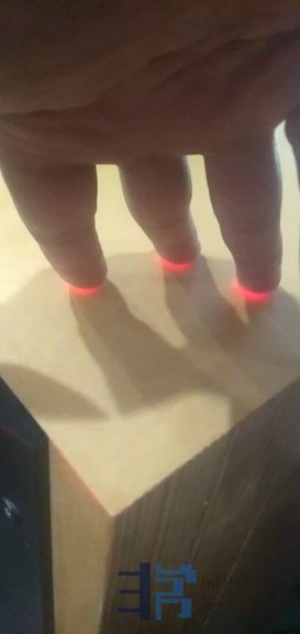 有时差一毫米都不行,而最难调的就是一毫米,尤其是调节音箱的脚钉,激光水平仪的红线宽就两毫米多,红线的宽度还有点差别,所以,找到红光宽度一致的地方,把光显示一点点在音箱顶面的边上,反复调节脚钉使前后和一面都显示出一点点光。