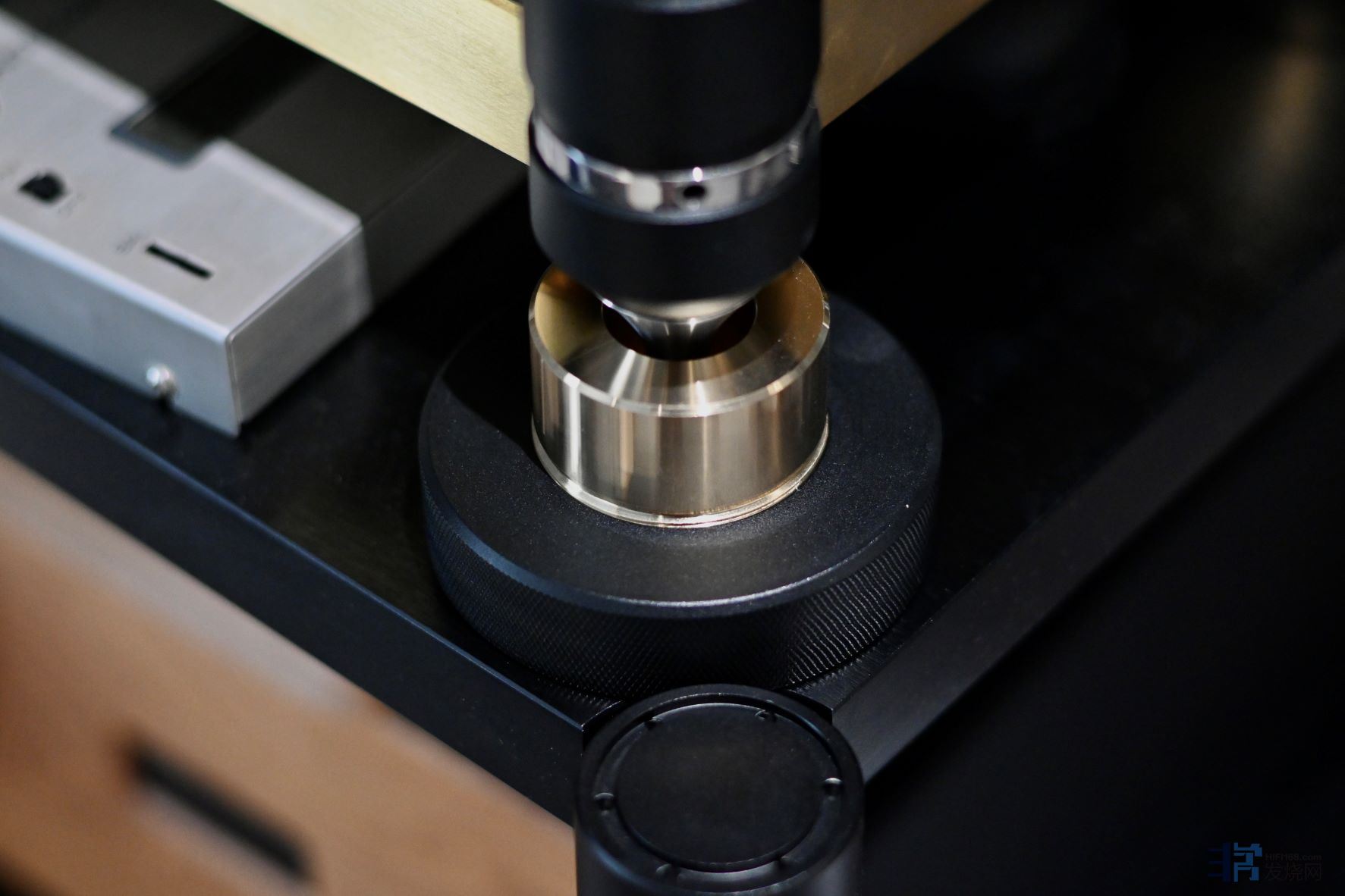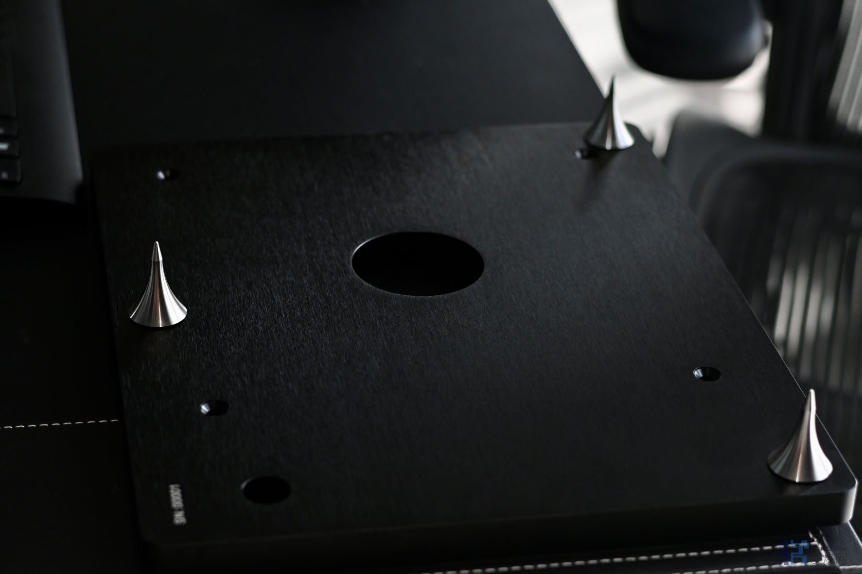 所以底盘的加工精度,脚钉的结构以及脚座对机架和脚钉的耦合,实际上是这个唱盘系统能够声音稳定和细节丰富的重要基础。