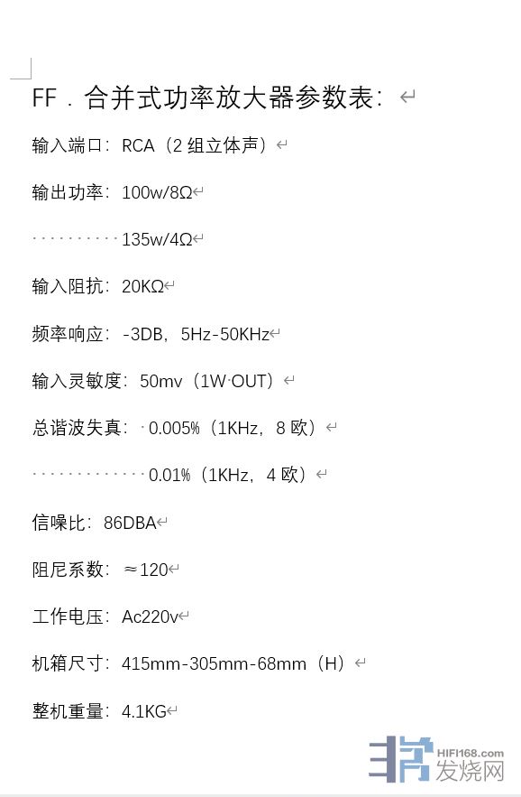 HU006 「菲凡FF 立体声合并功放 AB类功放 合并放大器 8欧100W 发烧功放」