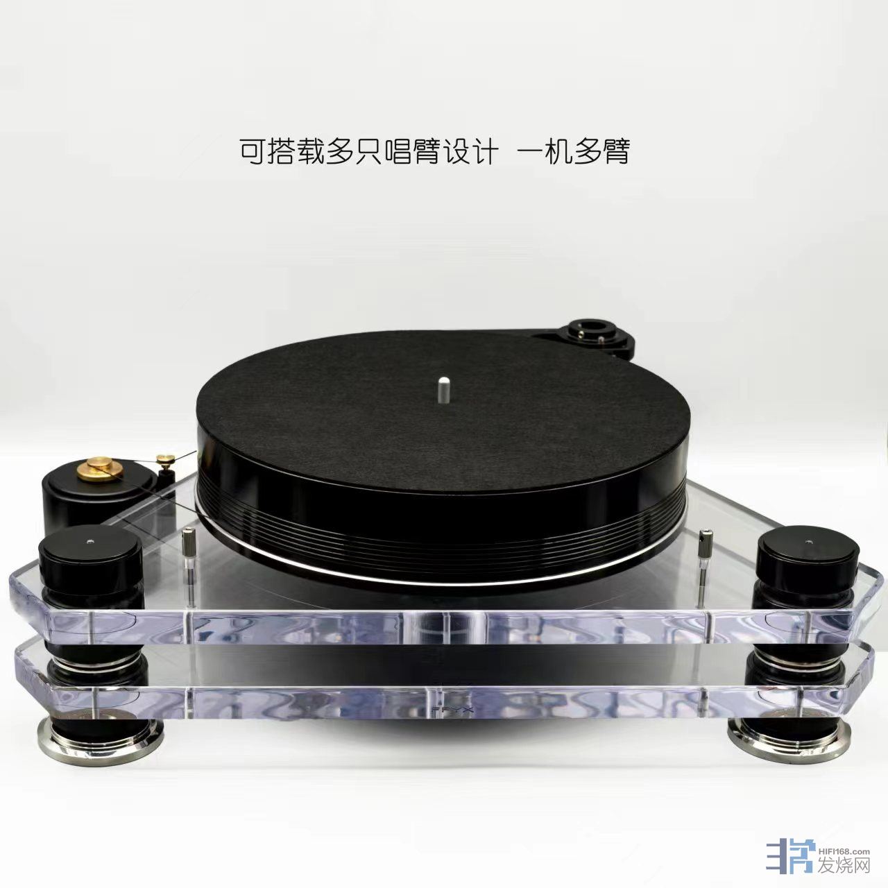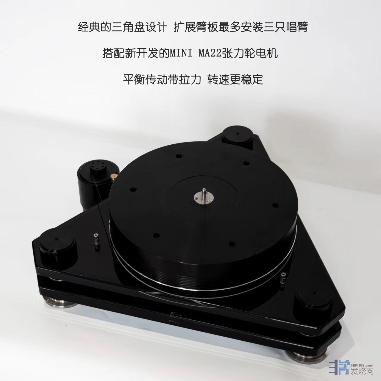 标配气浮电机,可搭配菲凡全系列唱臂,可支持3支单点唱臂或1支气浮正切唱臂+1支单点唱臂,其他品牌唱臂可定做专用臂板!
