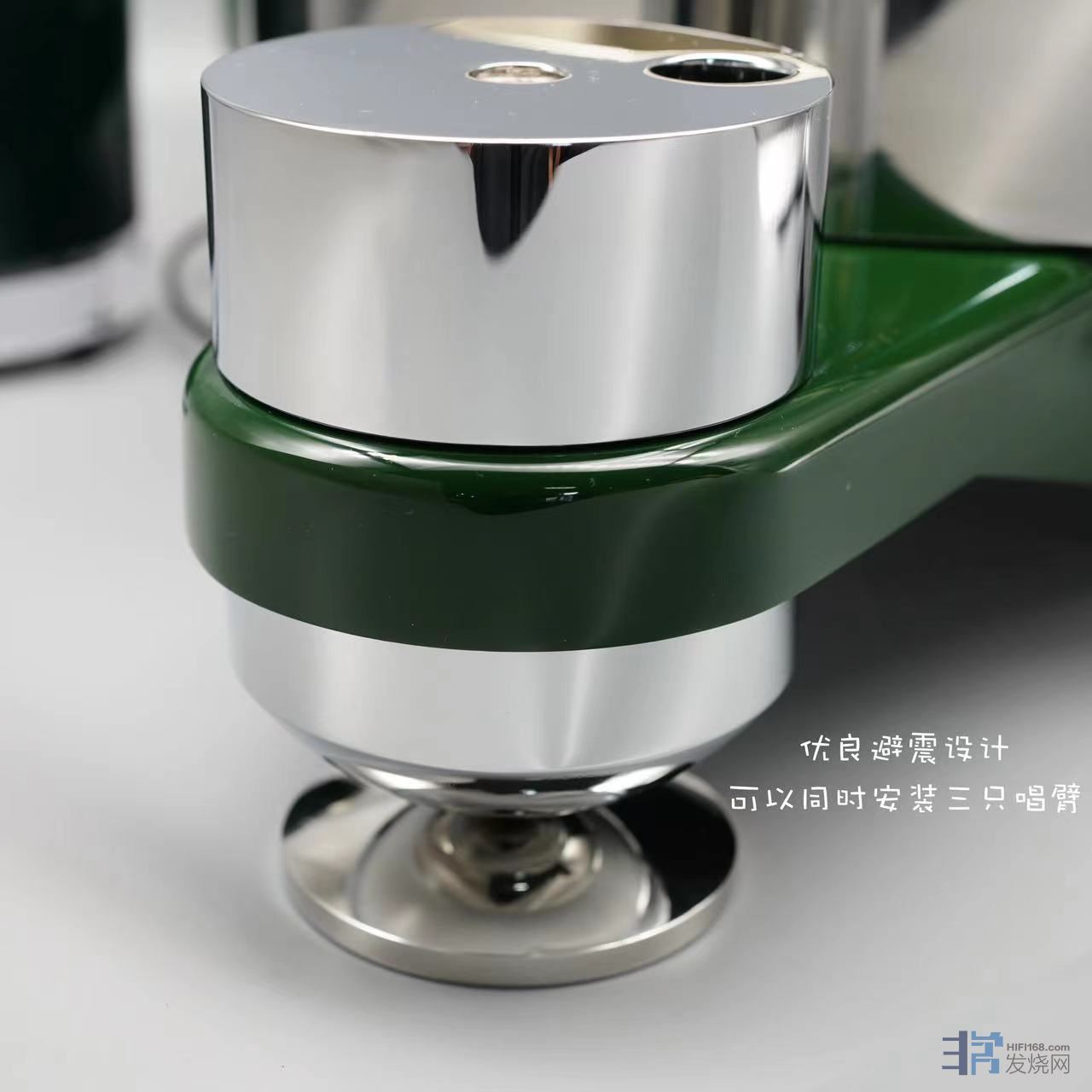 新升级弹簧避震唱臂座,声音更扎实,解析力更高,亦调整导轨倾斜角更方便,