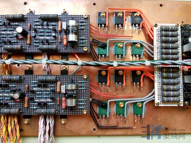 小功率管为16对飞利浦BC546/556,2对日立B647/D667;中功率管为6对日立B649/D669,大功率管为2对全新老装东芝A1301/C3280