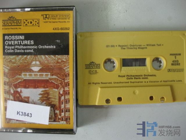 原版古典卡带K3843EMI; 罗西尼序曲集,皇家爱乐,戴维斯,美国版立体声,品相:良好 Y50