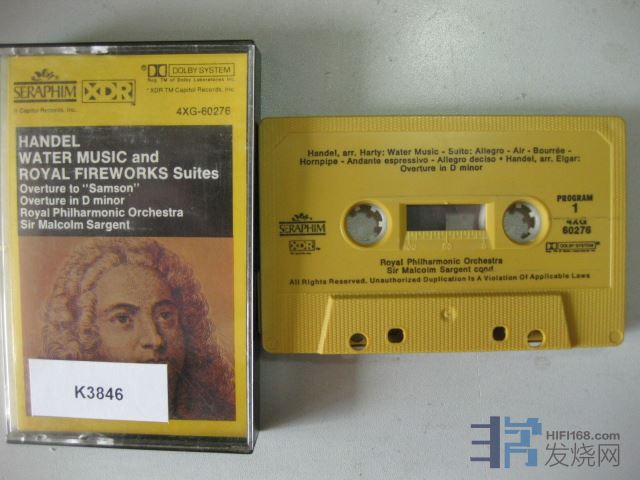 原版古典卡带K3846EMI; 亨德尔水上音乐和皇家焰火,皇家爱乐,萨金特,美国版立体声,品相:良好 Y35