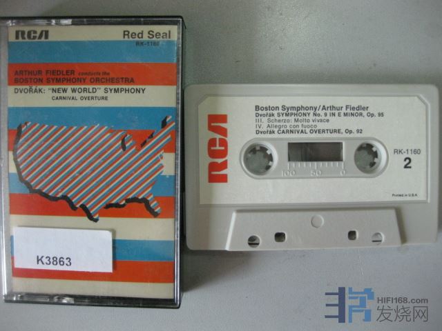 原版古典卡带K3863RCA; 德沃夏克新世界交响曲,波士顿交响乐团,费德勒,美国版立体声,品相:良好 Y65