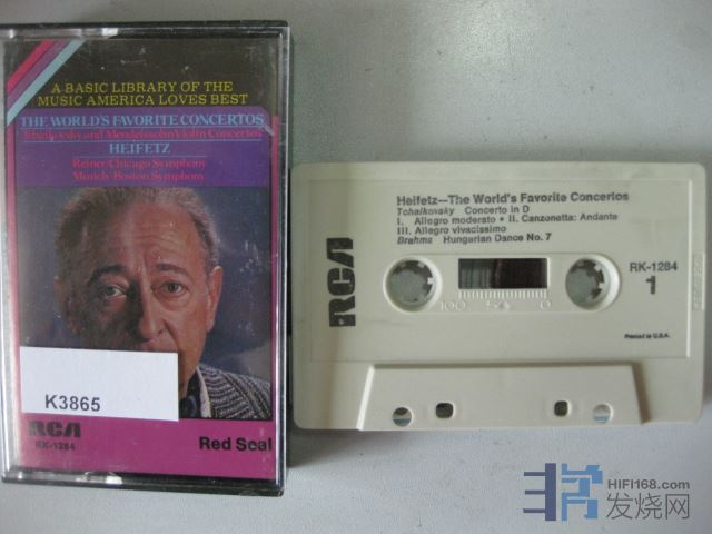 原版古典卡带K3865RCA; 柴可夫斯基和门德尔松小协,小提琴-海菲兹,芝加哥交响乐团,莱纳,美国版立体声,品相:良好 Y260