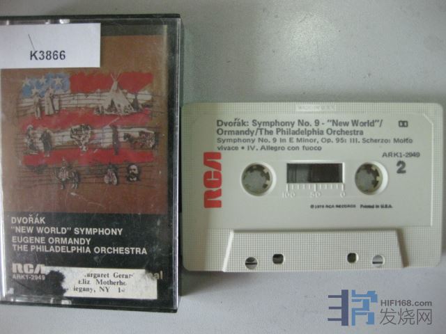 原版古典卡带K3866RCA; 德沃夏克新世界交响曲,费城管弦乐团,奥曼迪,美国版立体声,品相:良好 Y65