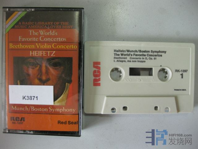 原版古典卡带K3871RCA; 贝多芬小协,小提琴-海菲兹,波士顿交响乐团,明希,美国版立体声,品相:良好 Y240