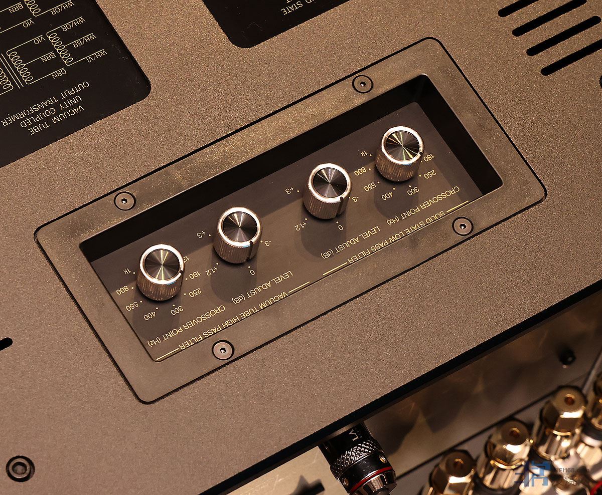 麦景图创造性低在一个机箱内装了二部不一样的单声道后级,一是用8支KT88真空管打造的300瓦后级,另一是由高电流晶体管打造的600瓦后级。