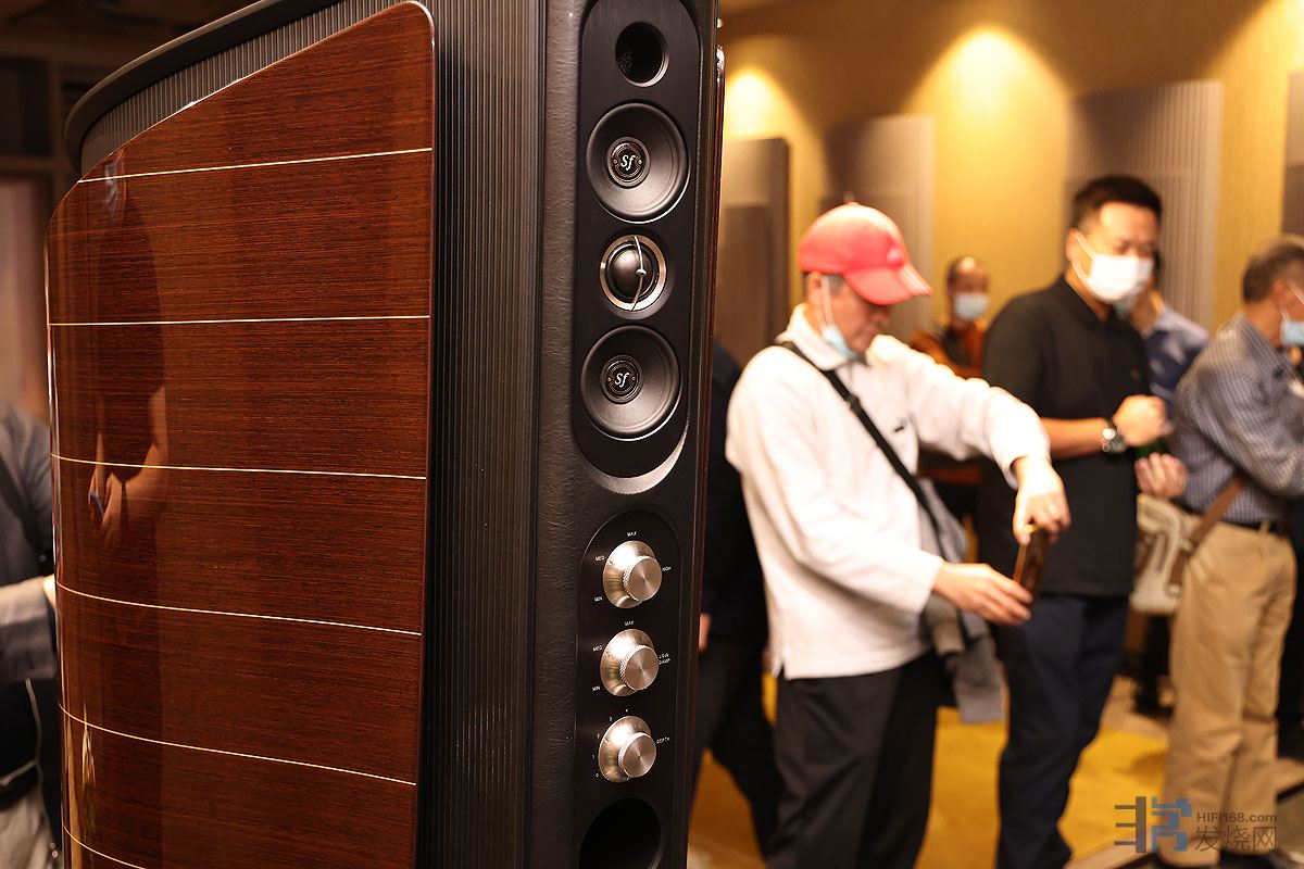 1979年成立的意大利著名音箱品牌Sonus faber势霸,品牌名称就是“手造的声音”的意思。现场搭配的是势霸的阿依达2扬声器。