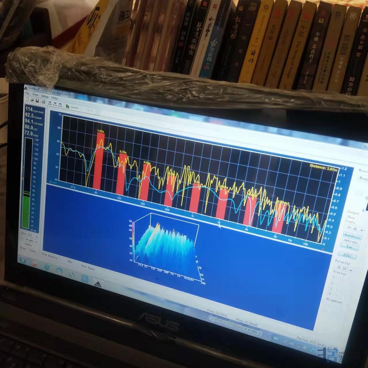 叫人来检测混响时间和频响曲线,用贵族R3.8音箱,从63~250赫兹频响曲线不平直,混响时间1.11~0.64S,太长了, 溪秀兰 发表于 2022/2/9 22:13:08