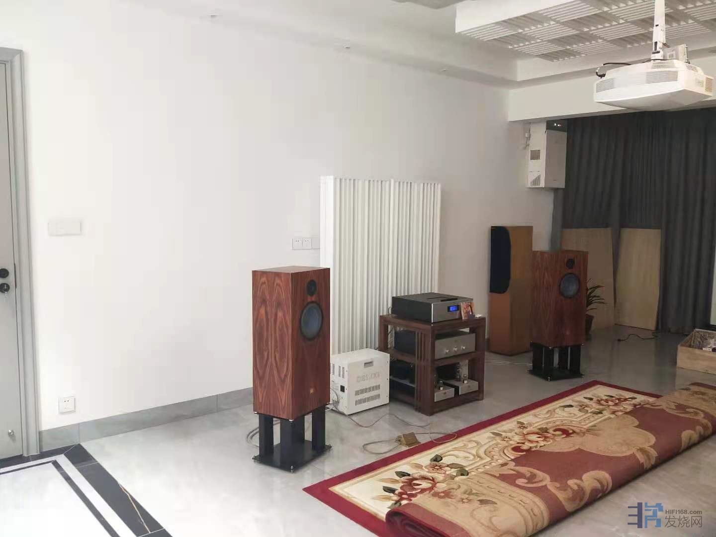 原来的做法和摆位,落地玻璃窗吸收低音,窗帘吸收高音,不符合前硬后软的原则,乃是万恶之源!