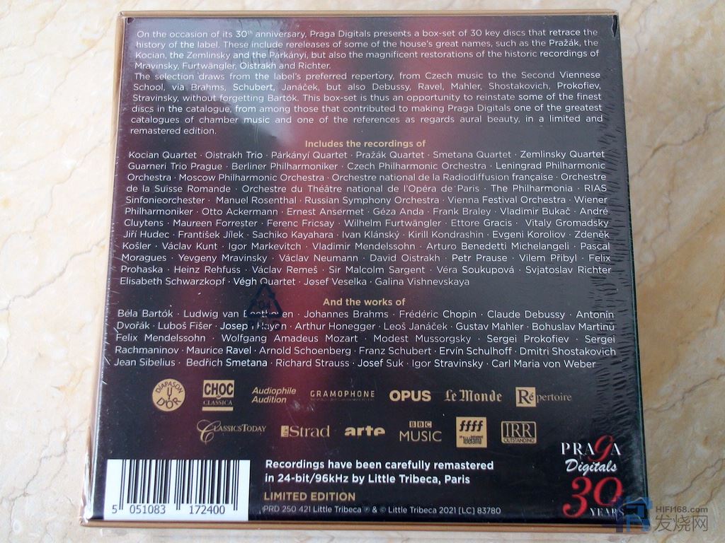 这套由Praga Digitals唱片公司在成立30周年之际,推出一套30张24/96规格的CD非常不错,新老录音都有,最老的录音是1952年,最新的录音是2010年,都是些名演名录,音响效果听起来也是相当不错,值得拥有一听。