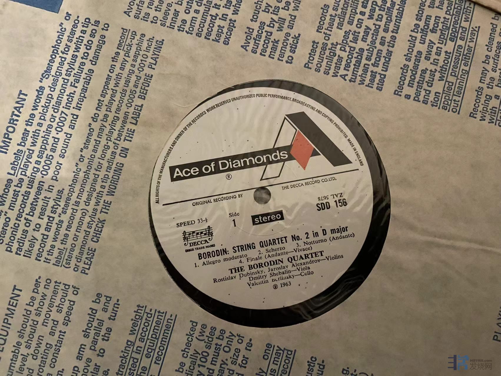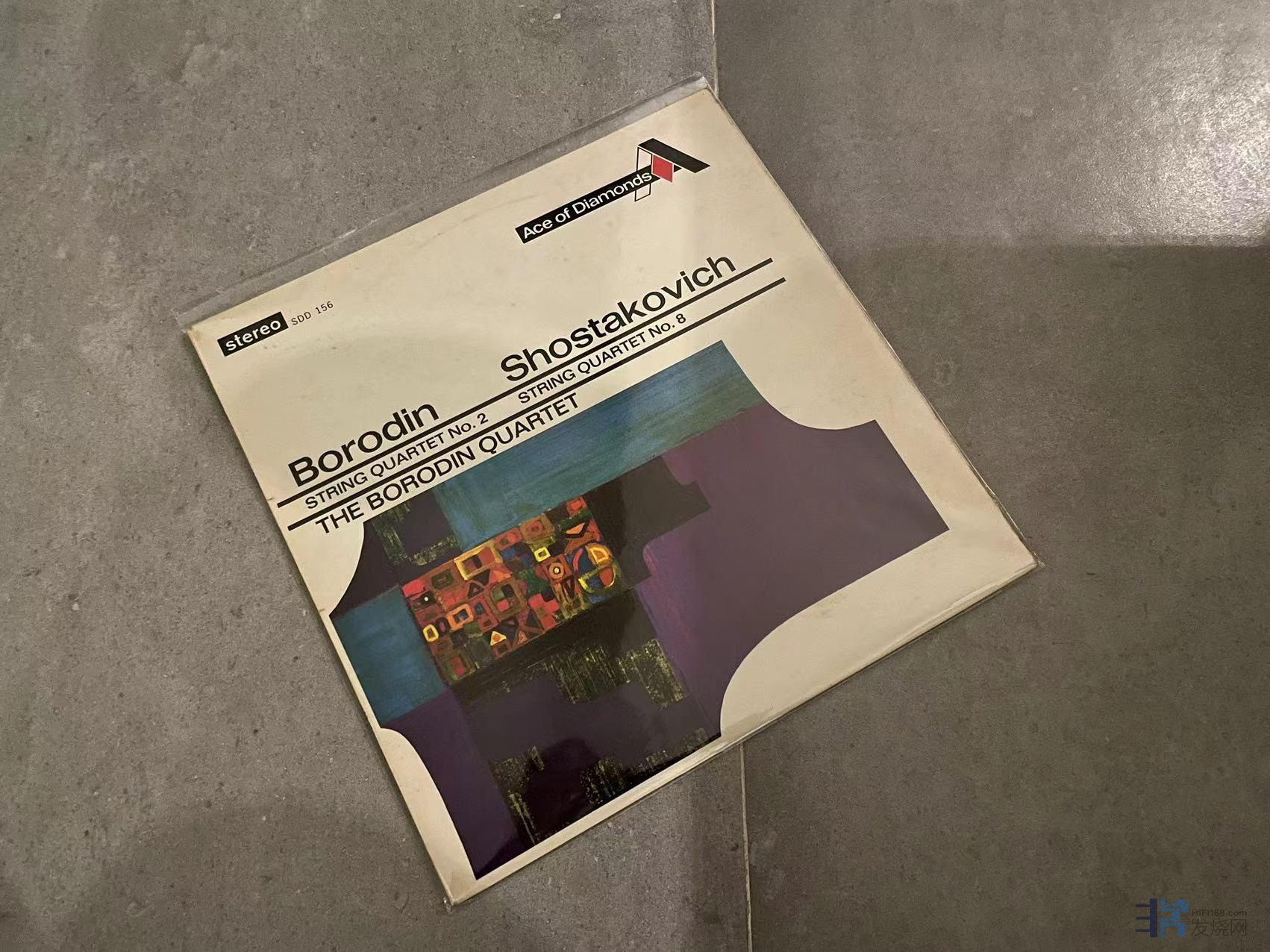 鲍罗丁四重奏演绎的肖斯塔科维奇四重奏和鲍罗丁四重奏,首版已是天价,Decca的Ace of diamonds系列,非常实惠之选,正常纸袋痕迹,一面有强光角度下一些弱痕,成色EX/NM-。180元