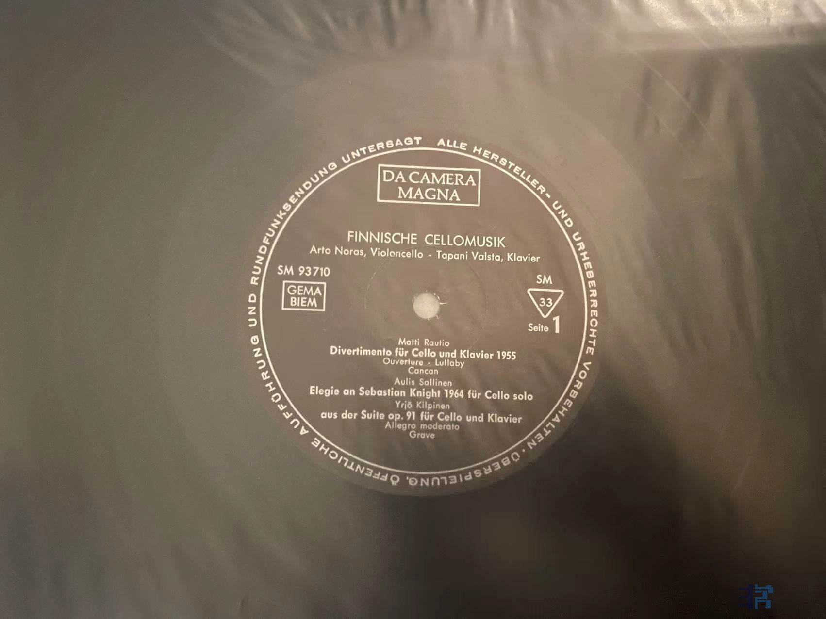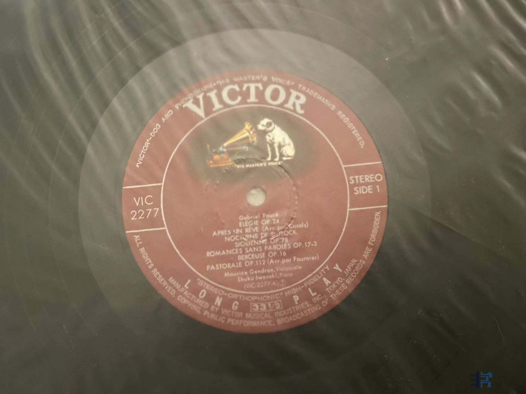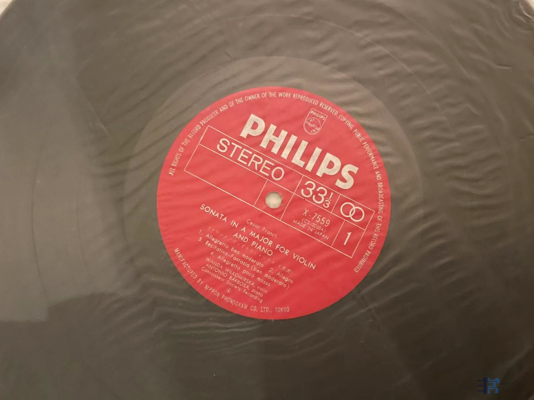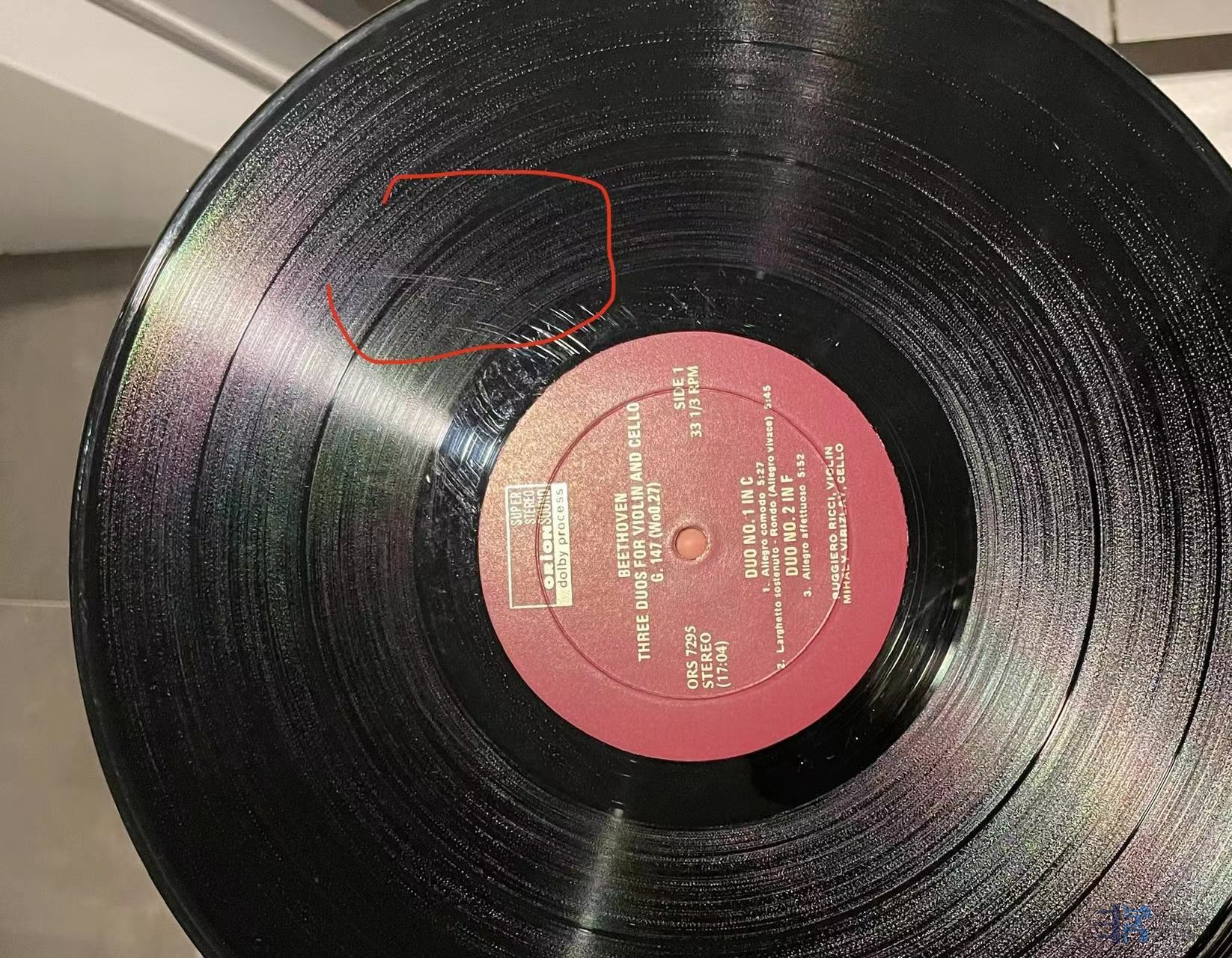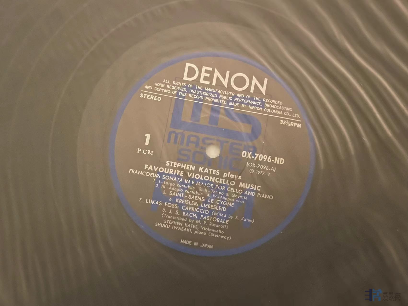 凯特(Kates)与岩崎淑(Shuku Iwasaki)合作演绎的大提琴小品集,天龙日首版,唱片一面成色完好,一面有轻微印子如图,应该是上一任藏家失手指甲划痕,实际播放尚好,成色NM/EX-。120元(已出)