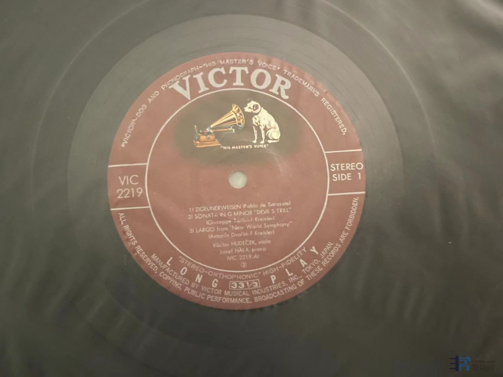 胡德赛克(hudecek)演绎的小品集炫技作品,包括流浪者之歌等,宫下伸古筝伴奏,比较少的唱片,日本Victor首版,胡德赛克在日本Victor下发型的唱片录音都很不错,很有他老师Oistrakh的神韵,值得聆听,一面有个软短痕如图,