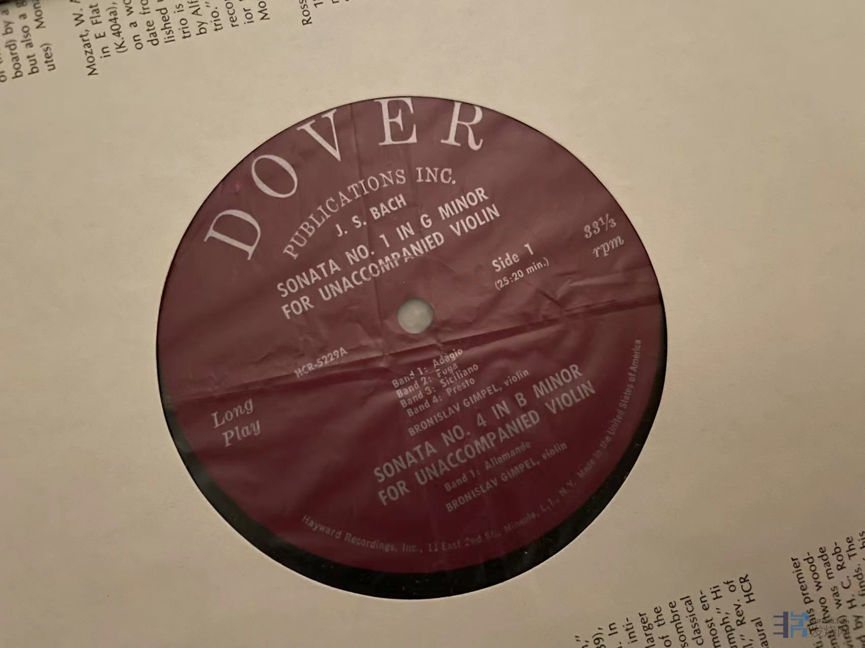 吉佩尔(Gimpel)演绎的巴赫无伴奏小提琴组曲第一集,美Dover首版,整体成色表面旧迹,外纸袋有损如图,成色EX。110元(已出)