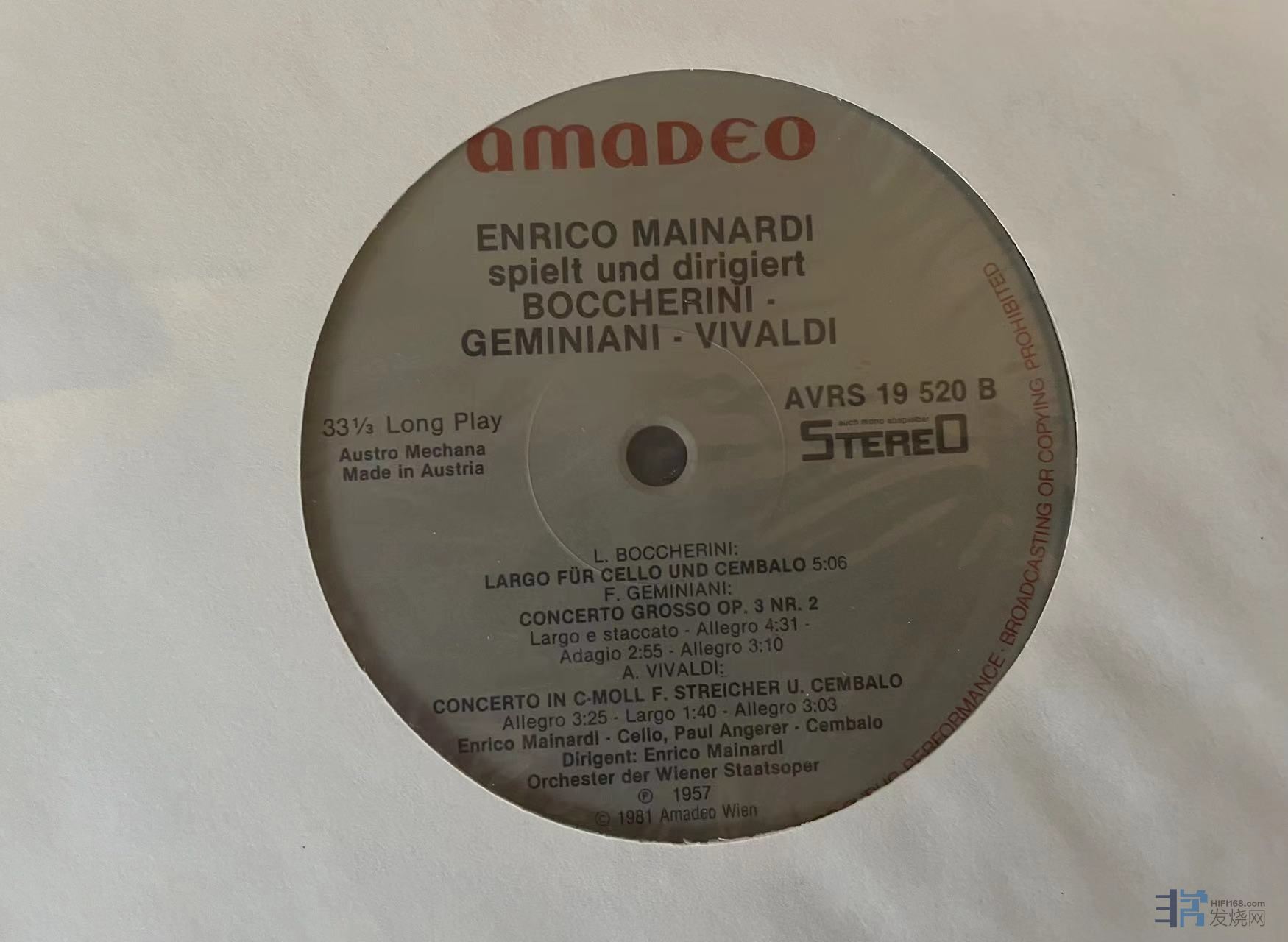 麦纳尔迪(Mainardi)指挥演奏的博凯里尼、维瓦尔第大提琴作品,Amadeo奥地利版,盘面很干净,成色NM。350元(已出)