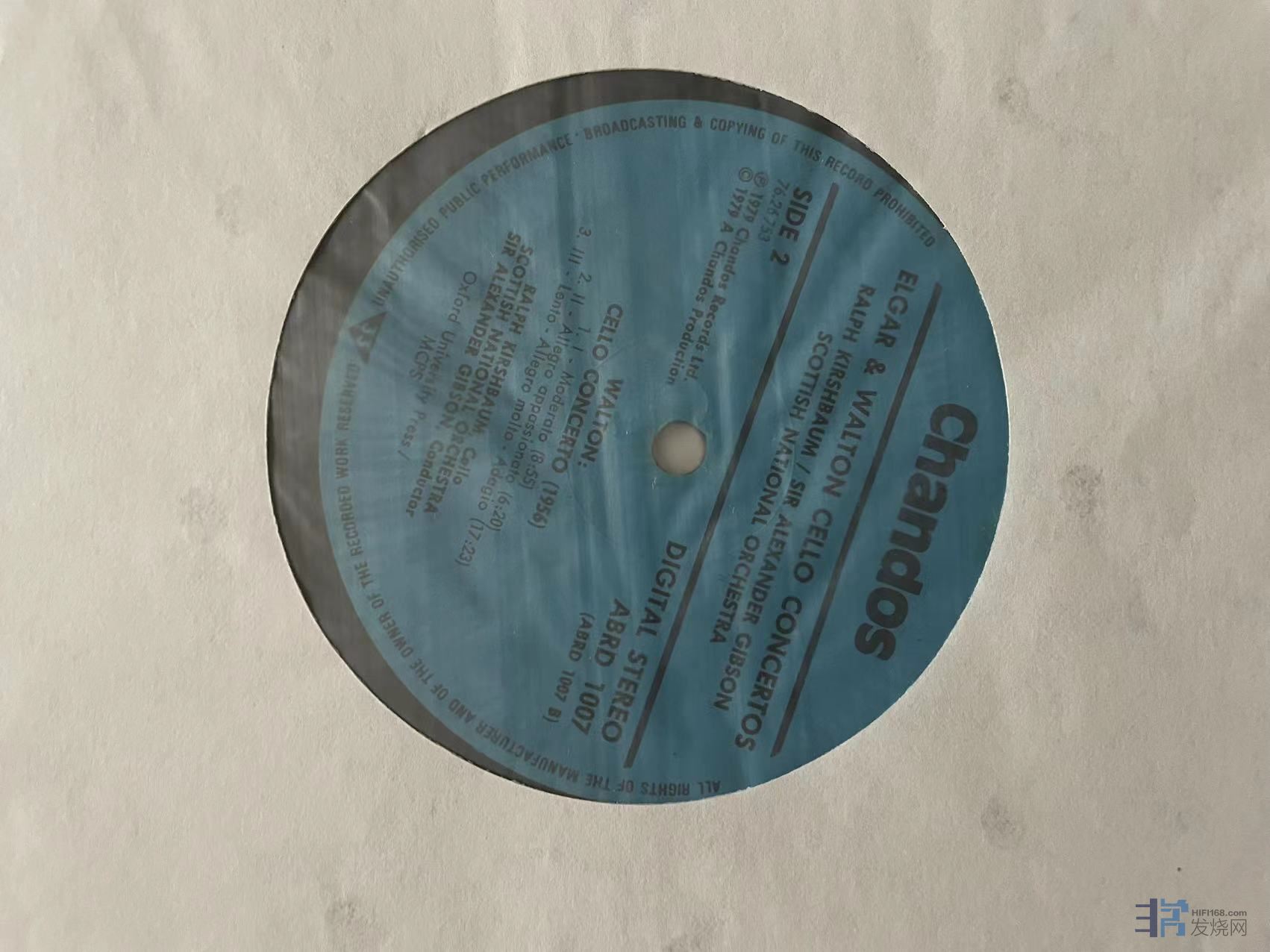 克什鲍姆(Kirshbaum)大提琴演绎埃尔加和沃顿大提琴协奏曲,Chandos英首版,盘面干净,成色NM。230元