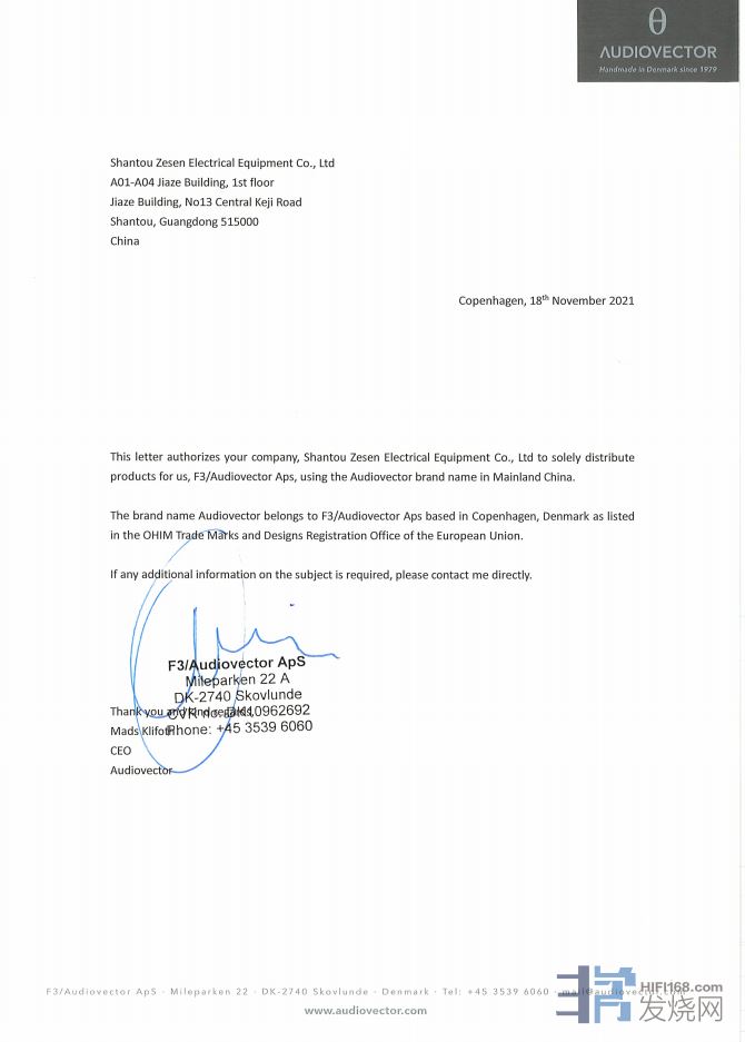 丹麦 Audiovector 与泽森音响签订合作协议,即日起,由泽森音响负责 Audiovector 产品 中国区总代理业务,泽森音响将竭诚为广大发烧友带来 Audiovector 优质产品,并提供相关的售后服务。特此声明。