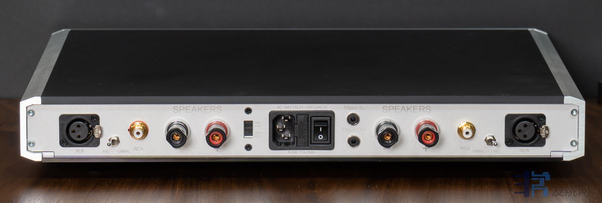 Evolution STA(以下简称EVO STA)从外型上看起来和大哥 Evolution One(以下简称 EVO One)一模一样,机箱同样也有银色和黑色两种选择。虽然外观相同,但 EVO STA 并非只是把两部EVO One 精简浓缩在同一个机箱里而已,而是加入了一个突破性的新技术,称之为 ODC 技术,可以让THD+N 总谐波失真大幅降低,解决传统上 D 类放大失真较高的缺陷。有多低?在输出 5 瓦(1kHz)的情况下失真不到 0.0025 %,输出 50瓦时失真不到0.007 %,甚至到了100 瓦时失真只有0.01 %,比EVO One 低了许多,规格非常优异。虽然极低失真未必能和所谓的好声音直接划上等号,但至少表示 EVO STA 已具备了「高传真」回放的最基本条件。重点是,EVO STA 的输出功率可是一点都不低,它在 8 奥姆负载下可提供 230 瓦连续输出功率,只比 EVO One 少 10瓦,4 奥姆负载时为 310 瓦,这样的驱动力面对大多数喇叭都显得游刃有余。