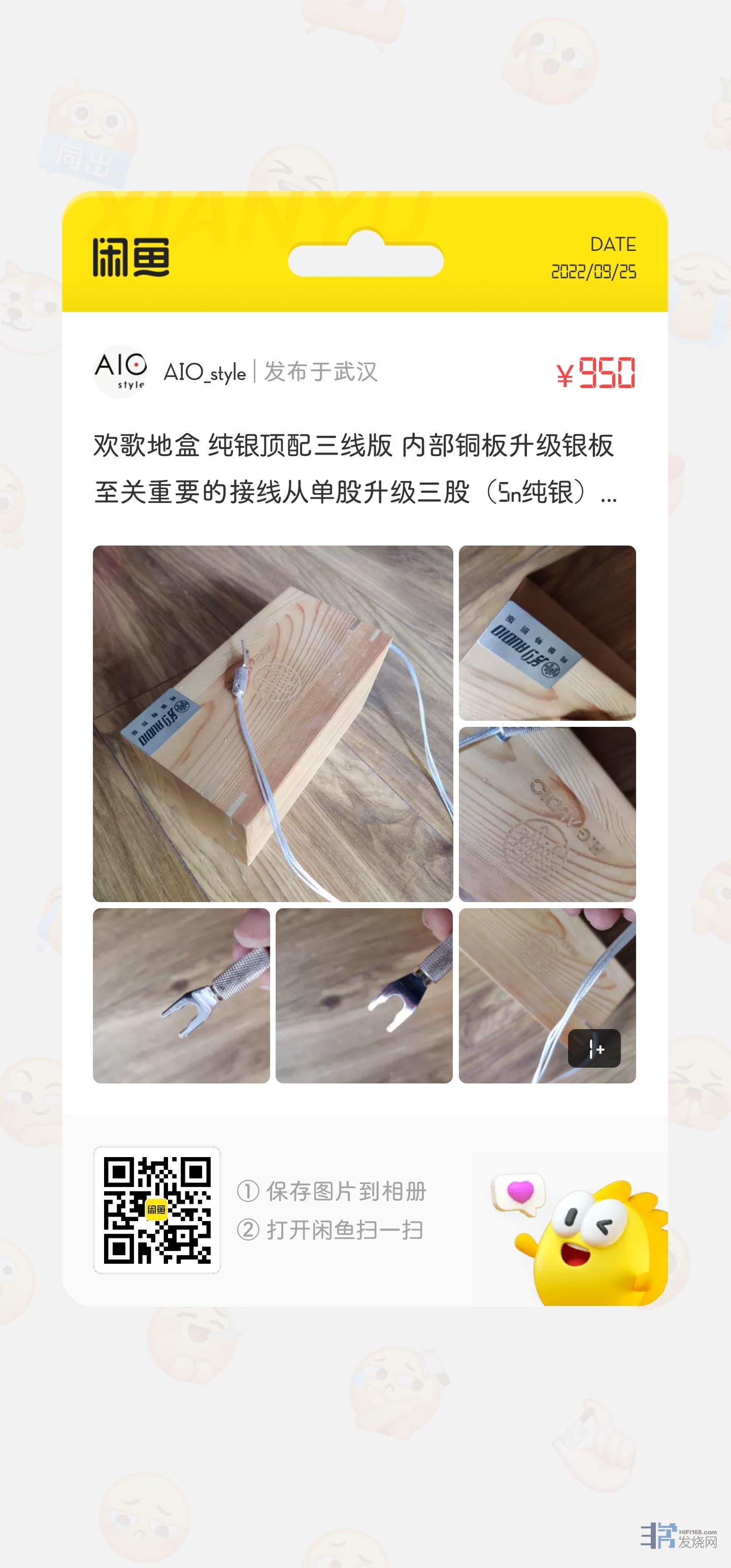 欢歌地盒 纯银顶配三线版 内部铜板升级银板 至关重要的接线从单股升级三股(5n纯银),长60cm 插头升级线世界厚肉银Y插(100多块),实现全通路高纯度银,全新一共花了1600,现出950不接大刀