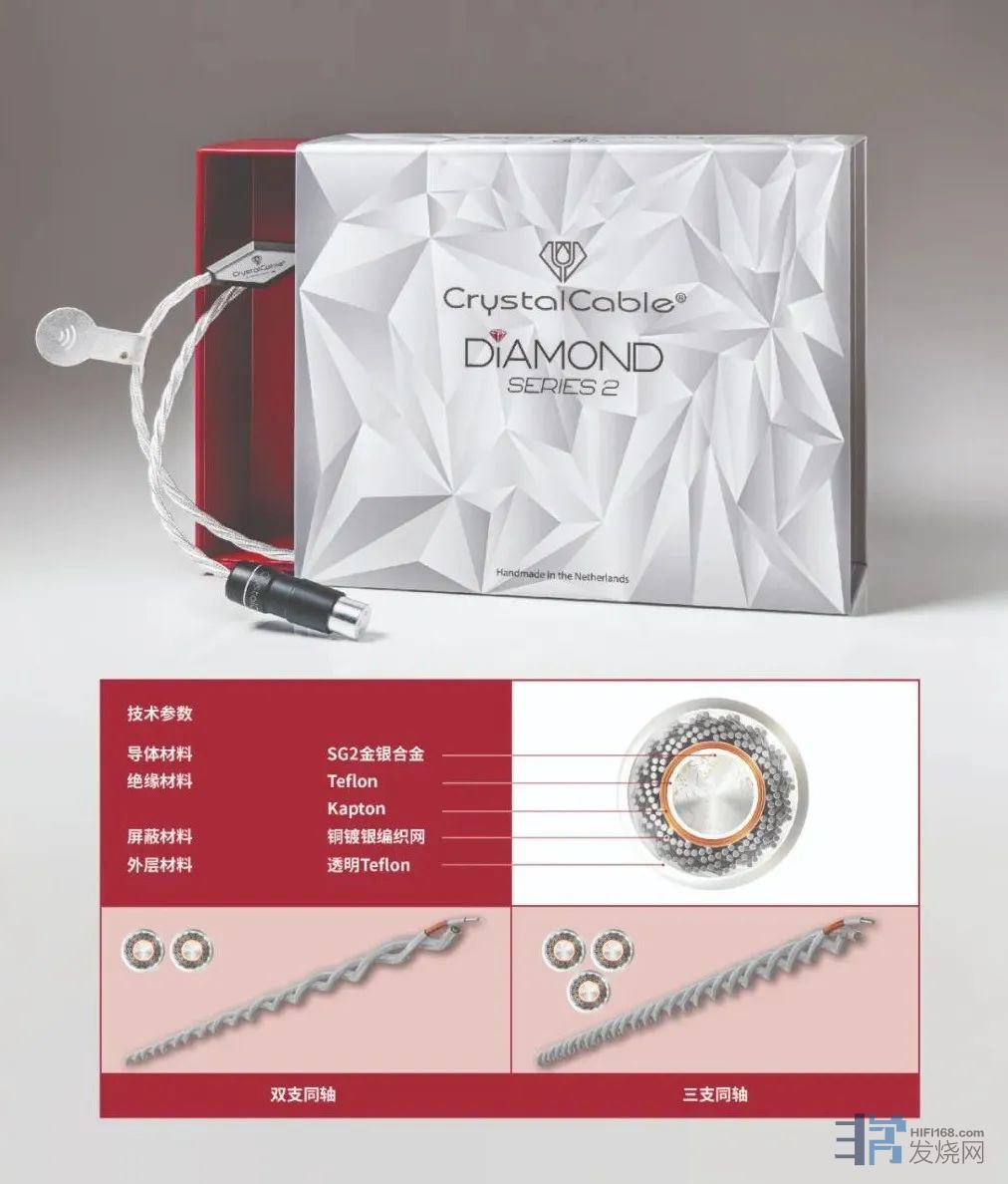 和晶彩所有的产品一样,第二代Diamond系列线材追求的是长久的与音乐的陪伴。它凝结了我们长久的在研发上的追求,也期待它能与您长久的相伴。第二代Diamond系列相对上一代的产品有传承更有超越。保持了晶彩一贯靓丽的外形,又在性能和声音表现上更进一步。它代表了晶彩多年研发的积累和荷兰制造一丝不苟的精湛工艺。也印证了一句老话——“钻石恒久远”。