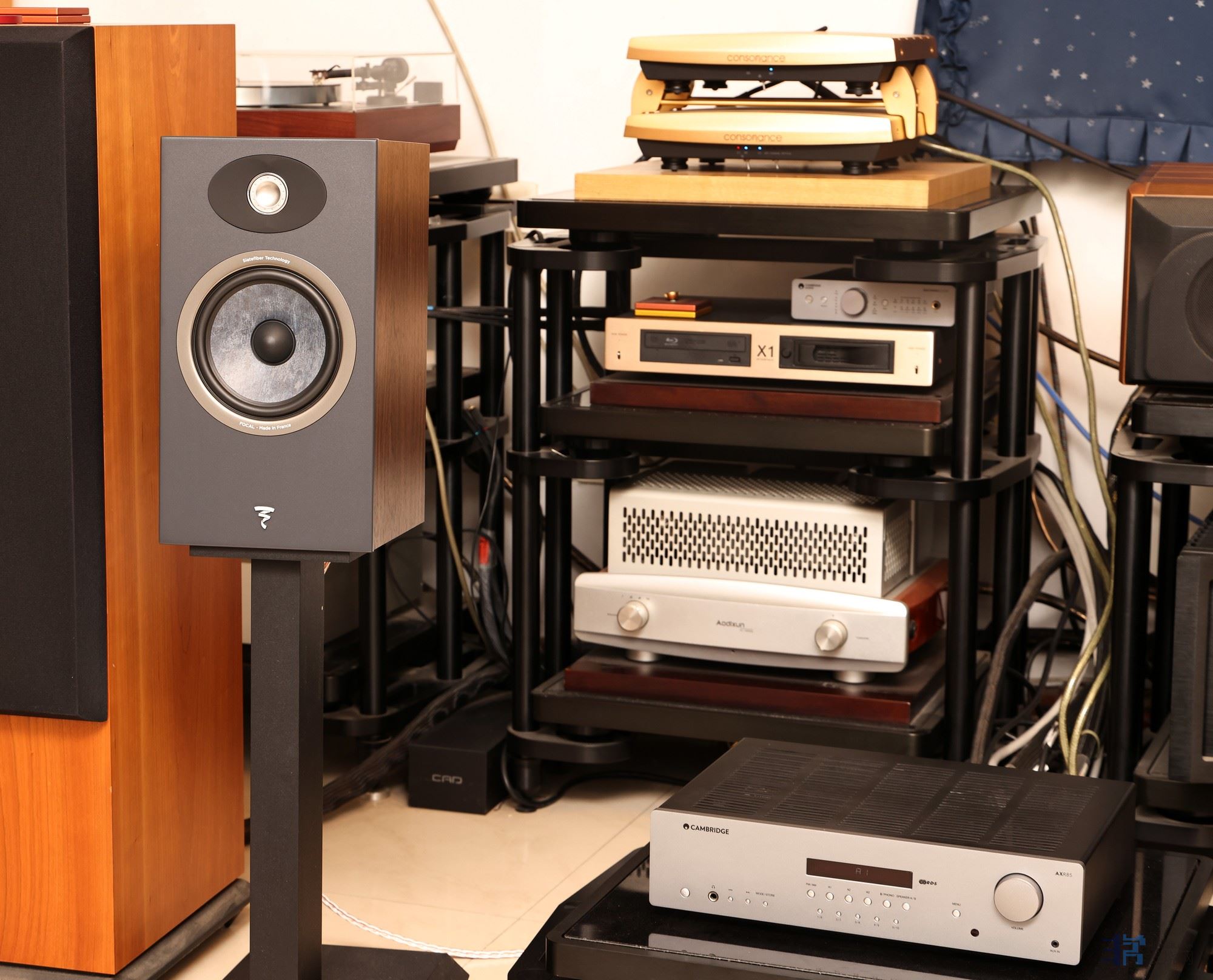 试听劲浪天籁一号搭配的是英国剑桥AXR85蓝牙、调谐、唱放合并放大器,定价5990元,这是性价比非常高的一款放大器,搭配一台欧洲声组合。