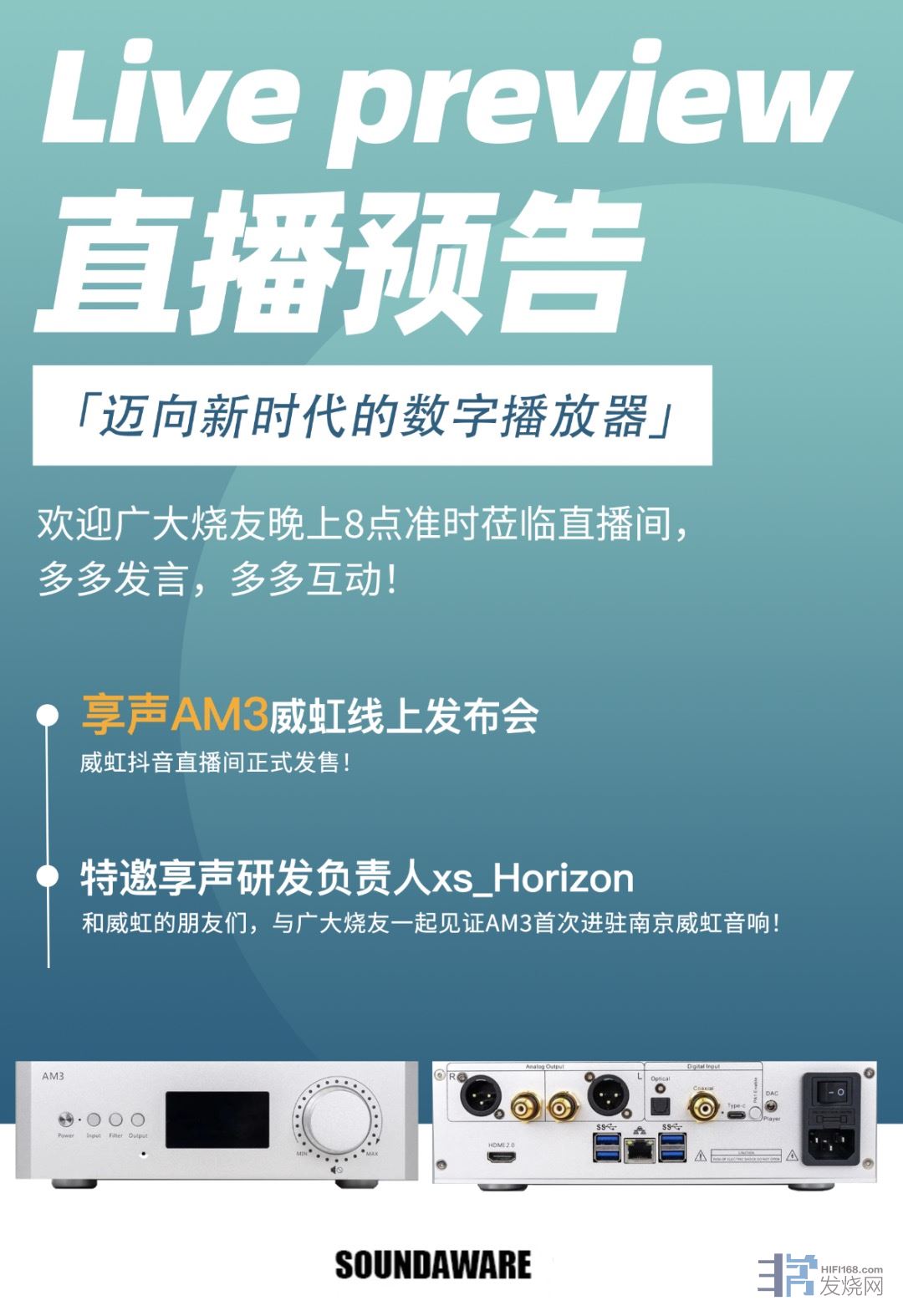 主题:《迈向新**的数字播放器——享声AM3威虹线上发布会》