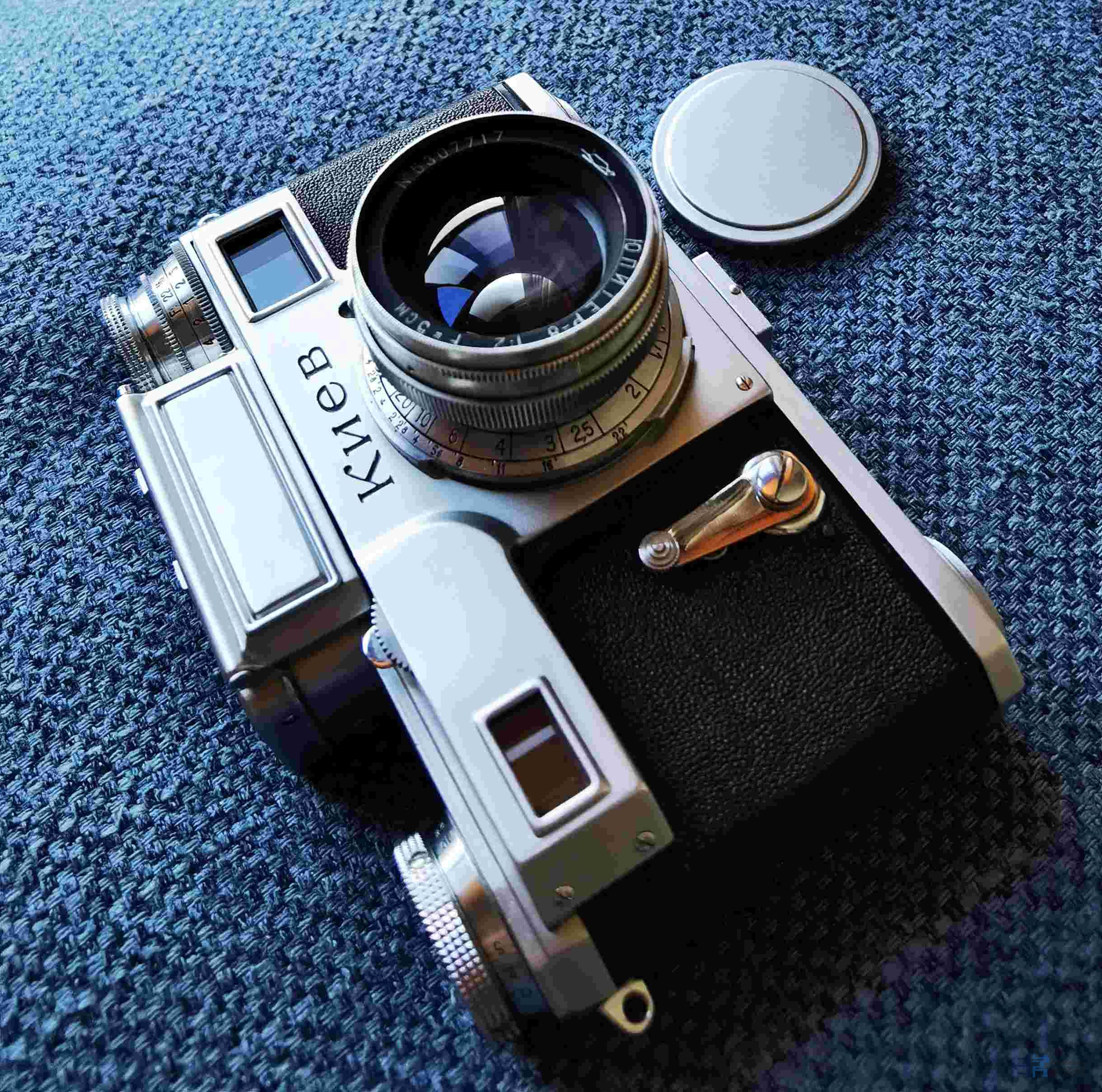 1952年至1955年,原版仿制二战前带测光表的CONTAX III生产KIEV III旁轴照相机,分为俄文国内版和双语出口版,其中早期蔡司生产线版本(机顶A编号,1955年前)和出口版很稀少。