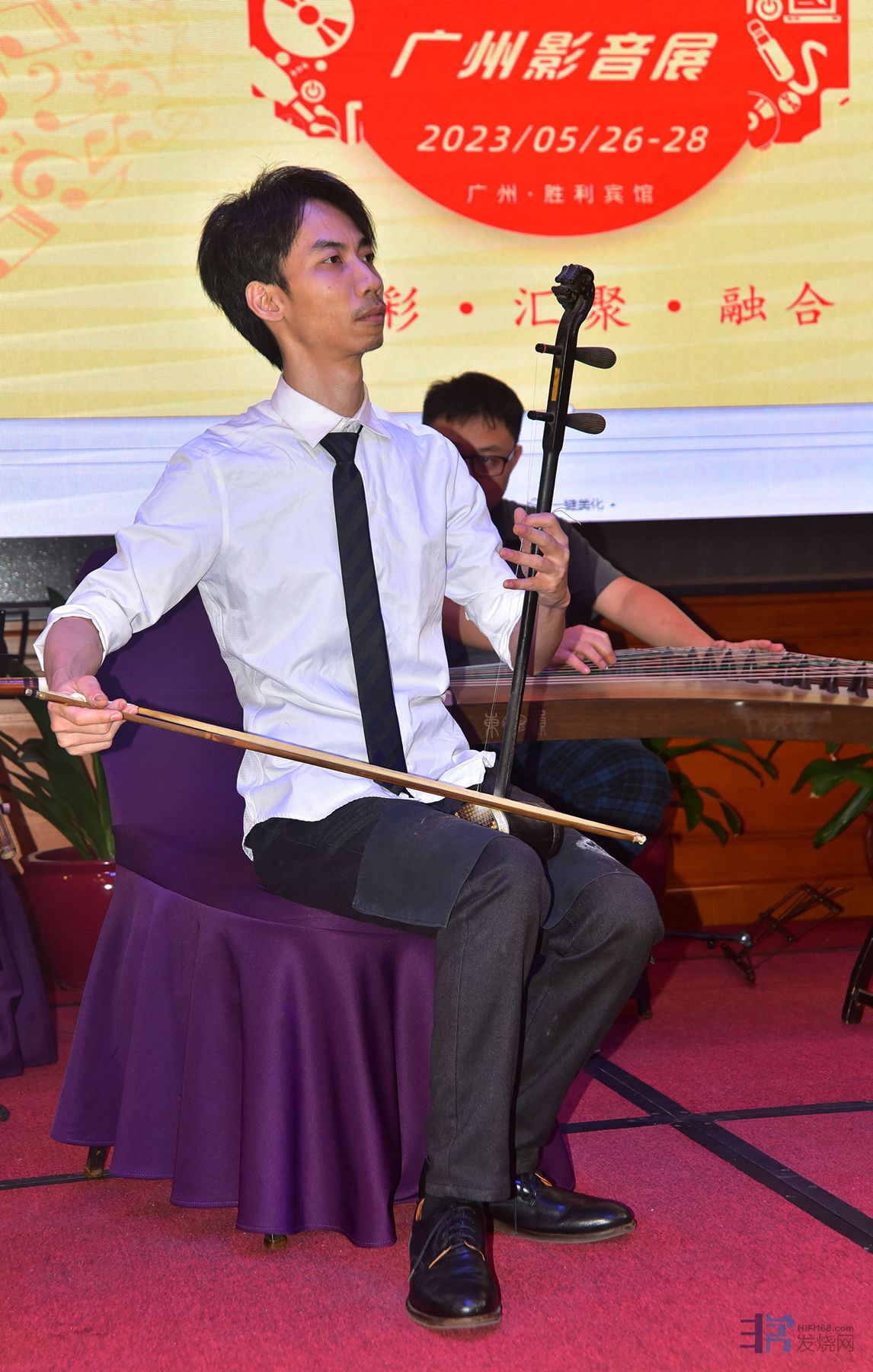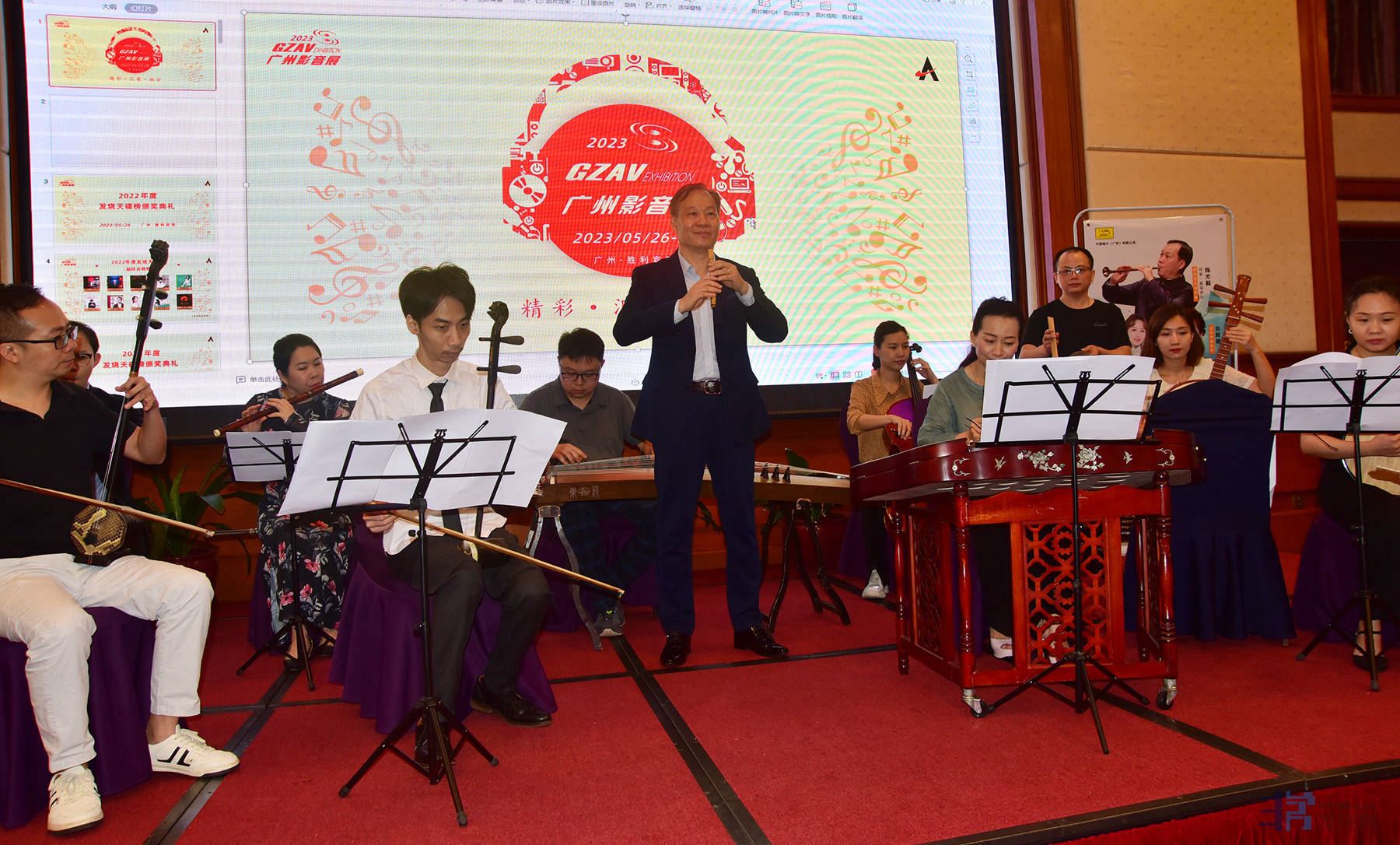 去年的展会上,著名喉管演奏家陈芳毅带领着高胡演奏家余乐夫和一群民乐演奏家为展会观众献上一台民乐合奏音乐会。
