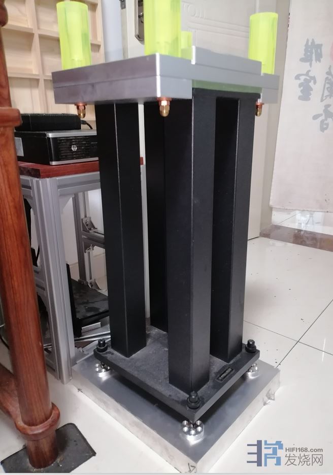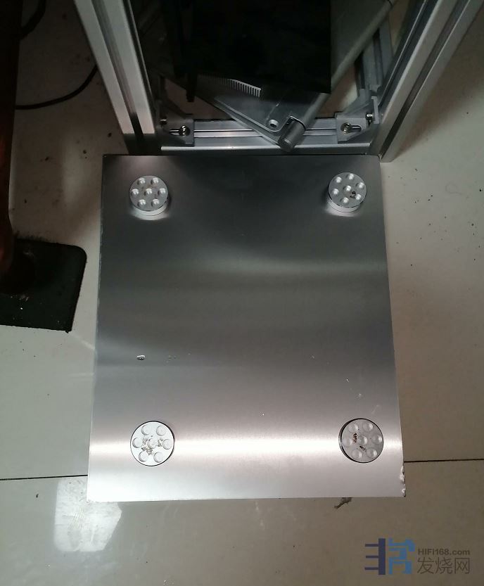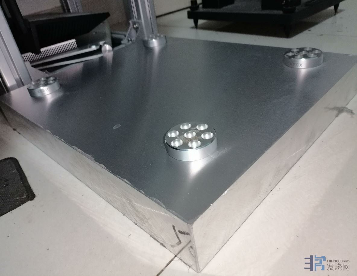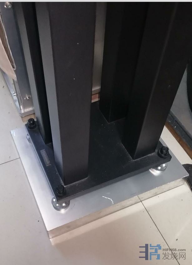 在地面与铝合金垫块之间 还有一层2毫米厚的聚氨酯吸震垫片 还没有安装