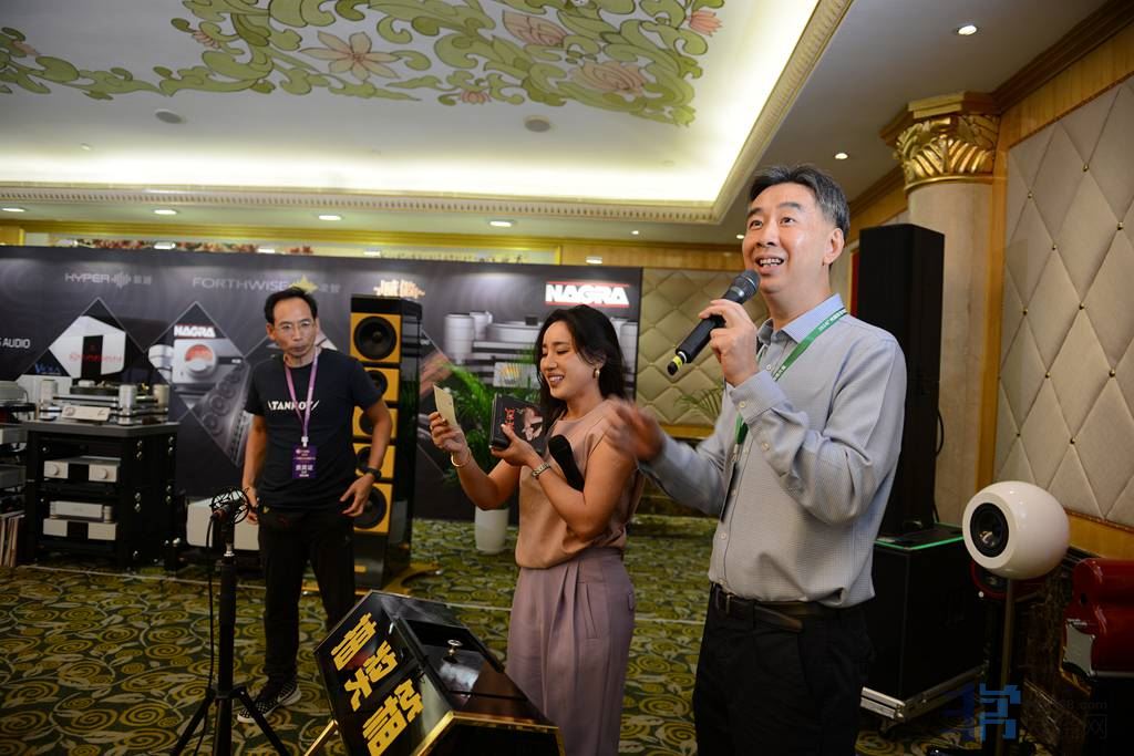 2024年11月23日《2024非常发烧网网友大聚会》。一年一度非常发烧网(HIFI 168.com网)网友大聚会,我带着广州市两位大学生发烧友来参加大聚会。大聚会在《东方宾馆》8楼大展厅举行,这次聚会由HIFI 168.com论坛四大版主组织(至今已组织十几个年头)这种组织能力不简单,要点赞。大聚会当然有版主分别主持精彩节目。这次聚会所用场地器材同样是感谢威傲音响代理商。这次播放的软件音乐非常动听靓声,因为都是首版LP软件首版C D。通过版主们的辛勤筹备,聚会活动原本在7.30分开始,但是还没到6点钟,就有来自全国各地的音乐爱好者,发烧友早早就赶到现场排队入场。我6点到时坐位上已满无虚席。这次聚会人气旺盛,烧友积极参与,令音乐分享会热闹非凡。音响音乐发烧友最喜欢的是有个大场地加上顶级音响相聚一堂进行大欣赏,利用音响和音乐这个桥梁,互相交流,进一步提高音响音乐的知识水平,惬意做着细品音乐一晚。节目中欣赏音乐分别由三位版主eric版主,Willson 版主,Dr kuang邝版主分别主持各自精彩的音乐软件分享,音乐内容丰富,精选曲目非常生动。威傲音响代理的顶级器材组合大箱让大家听到中音丰润无敌,动态和气势凌励,听到音乐赏心悦目。现场有歌手到场唱歌,听CD后对比真人唱几首,各位听后都拍手叫好。这是一个幸运和难得的聚会。可见这是中国烧友的福气和骄傲。           Willson 版主和Dr kuang邝版主KEN 版主分别分享经典音乐软件及不同录音载体的版本音乐软件,两位分享幽默风趣又搞笑,经典音乐主要经过人一首一首的分享,更令人细心听,是特别的生动。现场有抽奖互动,论坛E版主送唱片并抽奖,这种论坛聚会欣赏让人敬佩。还有其他商家及唱片商,个人提供的奖品品种相当多。这次聚会活动奖品较多大部分到场的乐友烧友基本都有份。最后提倡这种聚会要积极参与,积极棒场。今晚让音响音乐发烧友过着一个有趣的音乐分享聚会。压轴嘉宾隆重岀场,有请香港《音响技术》总编大草与钱**给烧友分享经典发烧唱片。大草分享,首首经典,非常动听,谢谢。