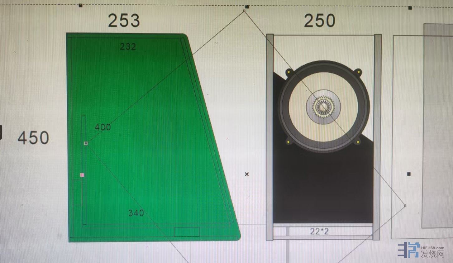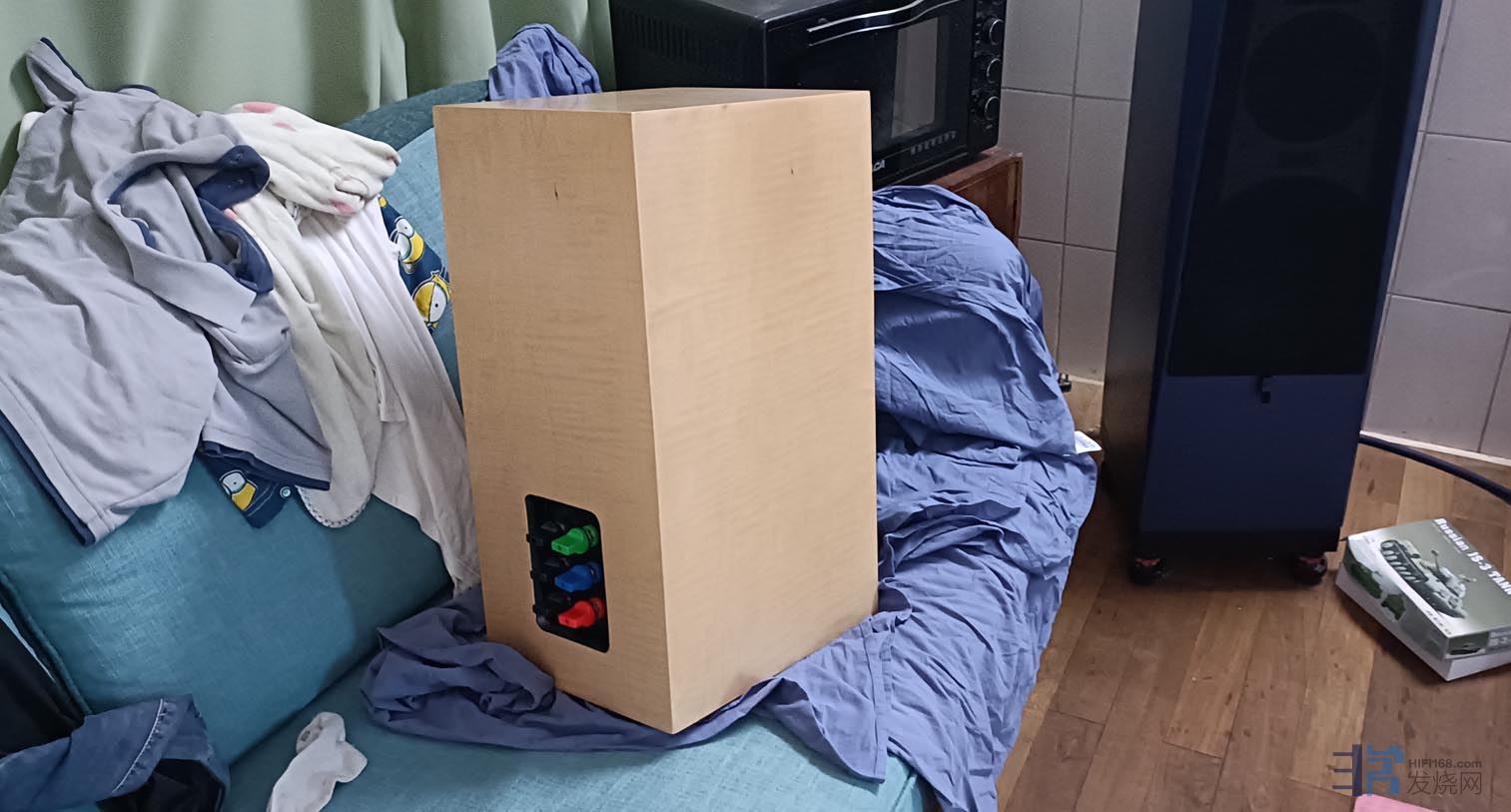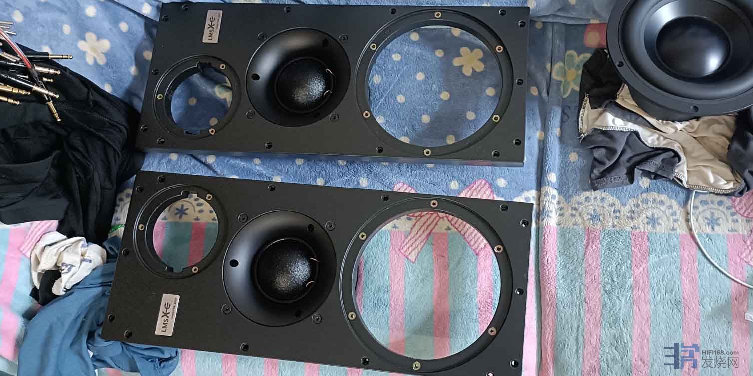 回复 26楼jimmyheiying的帖子这个我给它起名“硬邦邦”“YBB”,它算是一种30年前的思路,复古设计,8.7寸3分频中型书架音箱,这种大型球顶中音需要可拆卸前障板,背装的形式固定,箱体容积35L,重量78斤一只,比较有趣,结实,棱角分明。并且使用了哑光实木纹理,属于录音室版本但又是豪华定制外观。箱体不像“绿毛毛”为了追求绝对的性价比,使用了纯MDF板材,而是使用了和“冷冰冰”一样更高成本的实木多层夹板配合MDF框梁复合结构。厚度达24mm,前障板总厚度48mm。