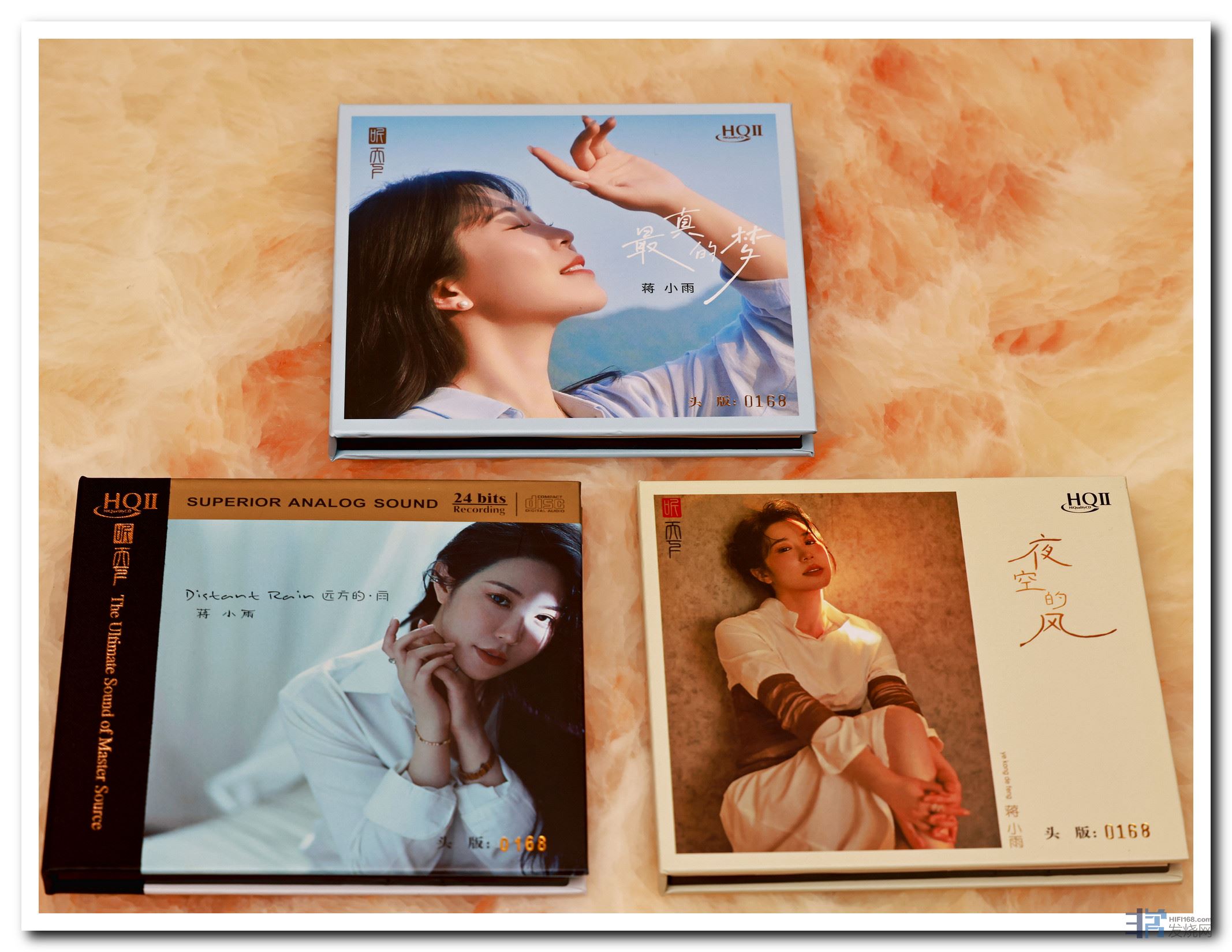 而唱片的主角蒋小雨也和我交流了一下,她告诉我,第一张专辑《远方的雨》,因为经验不足,录制了半年之久,第二张《夜空的风》卖的挺火爆,刚好在这几天,《夜空的风》玻璃CD也上市了。
