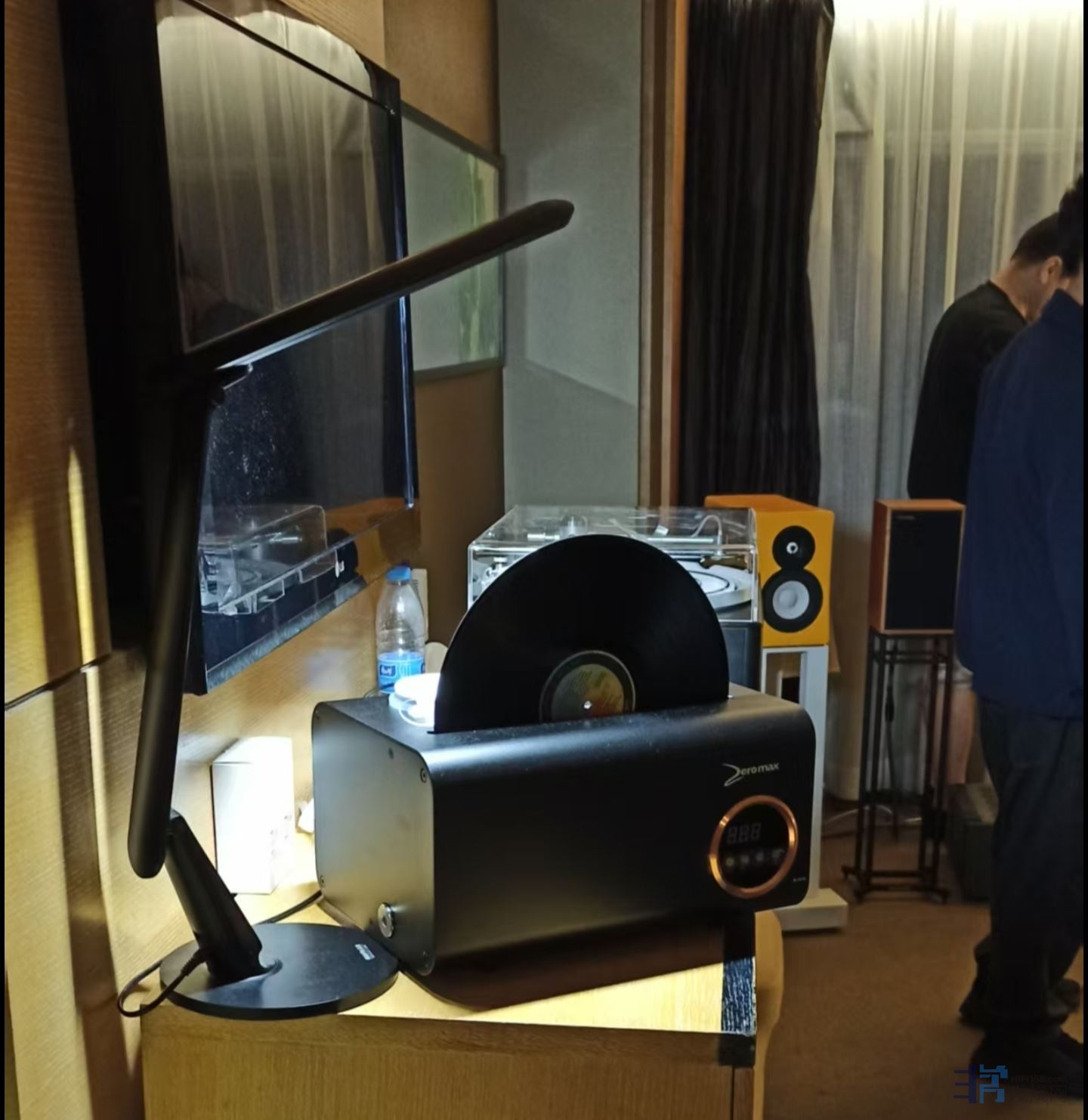 好消息: 3.1到3.30淘宝或微信订购ZEROMAX线洗机,展会特价:9800元,并送一支洗碟水(每支¥120元,可清洗50-60张黑胶),除内置一卷外另加送一卷清洗线(¥260,可洗一千张唱片),送一个防尘罩(¥600