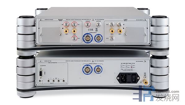 对于电源部分,所有接口部件都在背面,正面除了公司标志外没有其他装饰。后面板 - 布局与 HD 前置放大器的电源相同- 包含两个不同尺寸的 LEMO 插座,用于连接连接线,这样您在连接时就不会出错。一个为 HD 唱头的电子管电路供电,另一个为复杂操作功能的逻辑控制部分供电。虽然该电源看起来与HD 前置放大器和 HD DAC X 的电源完全相同,但是在基于原有的设计上,HD Phono的电源经过了进一步研发升级,采用了“创新技术,使其更加安静,性能更优”。它们不可互换,但都是超级电容器设计,在这种情况下,具有电池供电的优势,而没有使用寿命有限、对热敏感等问题。