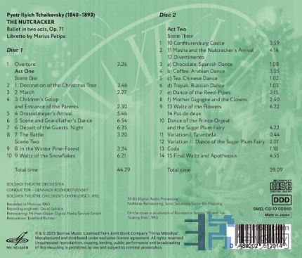 SMELCD1000665 ( 2CD優惠價 ) 日 本 制 碟 柴可夫斯基:芭蕾舞劇《胡桃鉗》( 原典全曲版)羅日傑斯特文斯基(G. Rozhdestvensky,1931~2018) 指揮波修瓦劇院(BolshoiTheatre)管弦樂團 &兒童合唱團l 權威正統演繹,羅氏指揮芭蕾舞劇經典力作l 立体靚聲銘版;樂感豐富生動, 劇力萬鈞Melodiya 源音母帶無壓縮輸出、低音染,原味十足