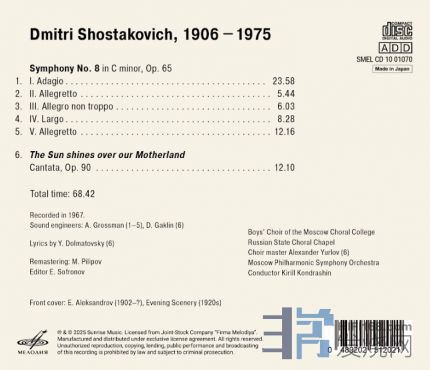 ANDRE 发表于 2025/11/25 19:18:12 2025/12月旬上市SMELCD1000665 ( 2CD優惠價 ) 日 本 制 碟 柴可夫斯基:芭蕾舞劇《胡桃鉗》( 原典全曲版) 羅日傑斯特文斯基 (G. Rozhdestvensky) 指揮 波修瓦劇院(Bolshoi Theatre)管弦樂團 &兒童合唱團 l 權威正統演繹,羅氏指揮芭蕾舞劇經典力作 l 立体聲靚聲錄音;樂感豐富生動, 劇力萬鈞 l Melodiya 源音母帶無壓縮輸出、低音染,原味十足 SMELCD1001070 日本制碟 肖斯塔高維契: 第8號交響曲 /太陽照耀祖國(Op.90) 康德拉辛( Kirill Kondrashin)指揮 莫斯科愛樂 l 英國企鵝評鑑指南最高評價, 肖迷拼死以求經典版 l 立体聲靚聲錄音;樂感豐富生動, 劇力萬鈞 l Melodiya源音母帶無壓縮輸出、低音染, 原味十足 l l l