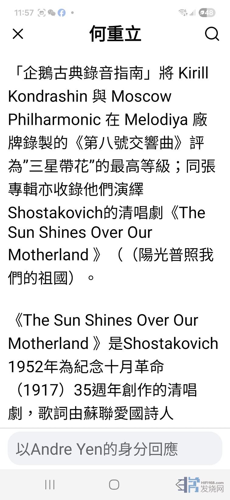ANDRE 发表于 2025/12/4 18:02:05 {2025年12月3日,工作日誌}話說前天同事急電問詢何時返回陳列室,說有兩位訪客正在進行"翻箱倒櫃/大肆搜刮"…。趕回到現場,二人仍還佇足於M記<執念>系列CD貨架前,人手一叠「戰利品」,貌似分外滿足。在簡單交談&自我介紹後,原來他們師生倆來自新加坡,都是古典愛樂人(老師現任教于國立大學)。因日前看到英國留聲機雜誌(Gramophone)的一篇專文介紹,于是前來一探。原本只是想待個半小時就接著去其他行程;不意唱片話题一開就止不住口,就這樣:「你一言,他一句,我搭腔…」,足足聊了3.5小時!音緣際會,意猶未盡,離去前合影留念,相約後會必有期。(P.S.)昨天用A.l.軟件試譯這篇報導文,英譯中,結果颇令人滿意,如示。