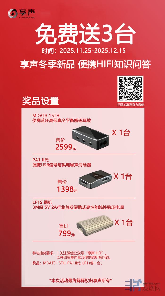 三款新品目前均已开启预售,官方也给出了诚意十足的首发优惠,更有套餐叠加福利。感兴趣的烧友们,可以联系享声官方或授权经销商咨询。