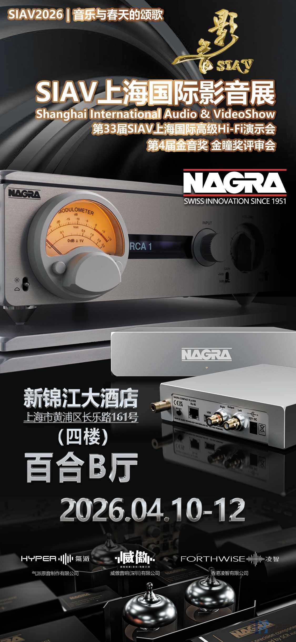 致敬影音热爱,共赴听觉盛宴!凌智威傲音响携重磅阵容,亮相2026SIAV上海国际影音展,诚邀各位影音发烧友、行业同仁莅临品鉴,共赏Hi-End级音质魅力。