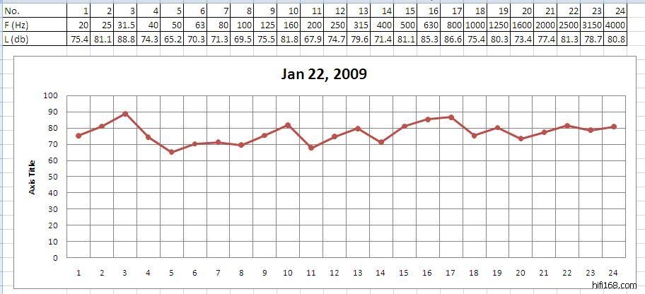 接下来用1/3倍频测量了一遍。没装软件,直接手工记录用Excel作了图表。
