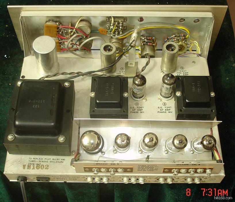 后级是美制古董的EL84推挽,线路改动了,把高低音,一些其他的控制都跳过了,用GZ34整流,1个X7共阴放大,7247倒相推动,EL84推挽输出。