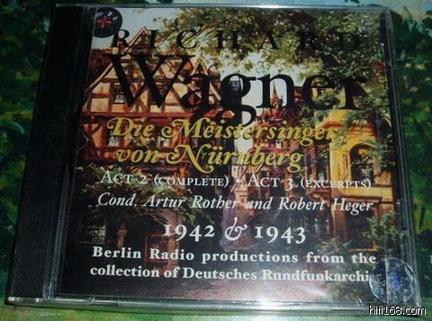 这是由Music&Arts公司从德国国家广播电台战时录音资料库中搜罗的一个拼凑版本,42年的第二幕(全本)和43年的第三幕(节选),前者由Artur Rother指挥,后者由Robert Heger指挥,虽然这是一张极不完整的唱片,仅仅第二幕是完整的,但就是这个第二幕,我认为是今次分析的所有版本中最热烈、完美的,虽然并不完整,但歌手精到的唱功和乐队极舒服的伴奏,加上令人吃惊的录音水准(听了这张唱片,你绝对不会相信这是42、43年的现场录音,绝对不输过50年代的单声道录音室录音水准),使得我对这张唱片爱不释手。罗特第二幕的Sachs由Georg Hann演唱,这位歌手以前从未听过,但演唱极富感染力,他的唱段娓娓道来,极富知性。Wilhelm Schirp唱Pogner,可以说是对这个角色所有演绎者中挖掘最深的,甚至超越后来者Gottlob Frick。Henk Noort演唱瓦尔特,是否由Hans -Heinz Nissen演唱的贝克梅瑟现在无从考证,但这两位的演唱也同样气度非凡、激越亢奋,真实地再现了18世纪德国工匠歌手的历史氛围。第三幕虽不完整,但杰出的瓦尔特演唱者Ludwig Suthaus已经满足了一切,只要听过“玫瑰色的朝霞中升起”,你绝对相信他就是有史以来最杰出的瓦尔特,可惜我们也只能到此为止了(直到现在我们还没能找到他的全本《名歌手》唱片),其温暖的音色、青春的朝气、豪迈的气势和并不缺乏的感情丰满的演唱,使得人们对瓦尔特有了全新的体验。Heger的指挥同样也是尽善尽美的,这在最后的终曲合唱中你会满意的。我觉得找到这张唱片作为《名歌手》的入门片,是十分合适的,这应该是能深受大众欢迎的,绝对强过某些全剧录音的节选唱片。(Music &Arts CD1068)