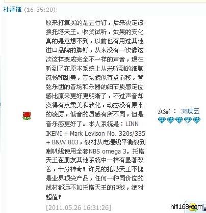 淘宝高烧友杜兄的评价: