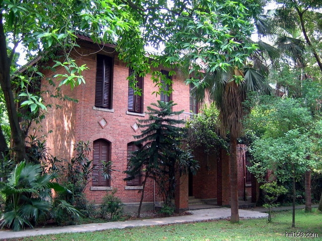看到我故居周围的建筑了.怀念童年时在红砖屋内居住过的美好时光!门前的小花园,经常有小鸟在附近的树上,竹子之间歌唱.邻居的小同伴经常能发现竹子上偷偷筑好的鸟巢.好几次,他都能捉到几只刚孵出蛋不久的小鸟.可惜都养不长。偶尔,也能见到喜鹊,特别是考试其间,一见到喜鹊,我总认为考试能考好。故居附近有几片绿草地,儿时和同伴曾在那踢足球,捉草蜢,草龙;草地上有个神秘的透风口,据说下面是非常大的防空洞,连通中大各区.读中大附小时,有几个玩皮的同学曾经从马岗顶的入口进去探险,结果如何记不起了,好象从很远的一个出口出来了。当时他们几个成了大家心目中的英雄.草坪附近的花丛中时常有各色的蝴蝶在飞舞,种类很多,颜色亦很多彩,有粉蝶,凤尾碟,宝蓝色的,绿色的,黑色的等等,她们很喜欢在"头昏花"旁采粉.当然在那也能见到大黑蜂"嗡嗡嗡".后来“头昏花”让人砍了,蝴蝶也就少了。到了夏季,荔枝树上会看见长鸣的秋蝉.含笑花开时,你能看到含羞带笑的花.故居后有棵高大的红棉树,每到花开时总几个小朋友守在下面等木棉花掉下来,然后一起去抢.还大钟楼的钟声,傍晚饭后摇着葵扇散步的老教授……,一幕幕美好的图片从脑海中出现.眼前似乎又看到父亲下班后从大钟楼走回家时的身影……