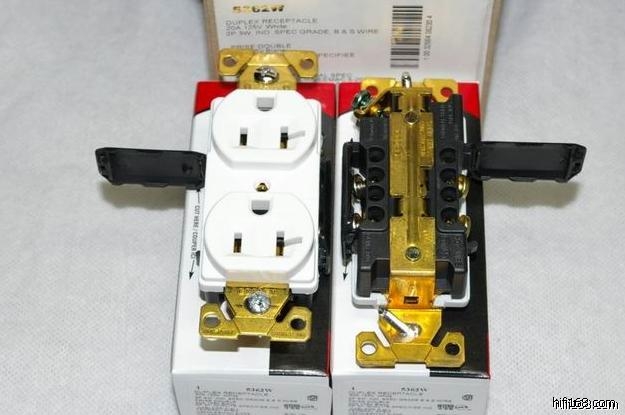 全新原装美国电料大厂Cooper 全铜防磁电源盒盖加COOPER(或合宝)铝制防磁电源盒。有两孔和四孔两种规格。配合原厂cooper插座使用效果好!cooper蓋子上有膠膜使用前請撕除..面板上面看到的小刮痕,是在保護膜上!!撕除保護膜就幾乎沒有刮痕了。一套是包括电源盒加盖板送一个束环2孔一套150元,4孔一套200这电源盒玩法多样,既可以入墙做插座盒,也可以像图中式样做成排插,两个插座混合 可以调出不同的声音,可玩性高。