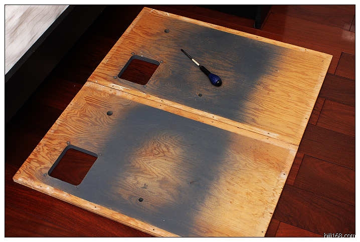 分频器一到,等于所有的配件都完整了,心里就动起了箱体的脑筋。首先是家里的摆放空间,由于独立的视听室肯定是放不下第二对A7的,所以只能考虑楼下客厅的位置,征得太太和女儿的同意,将原来属于女儿的一块活动空间(主要是她的玩具)打理干净,作为摆放第二对A7的地方。